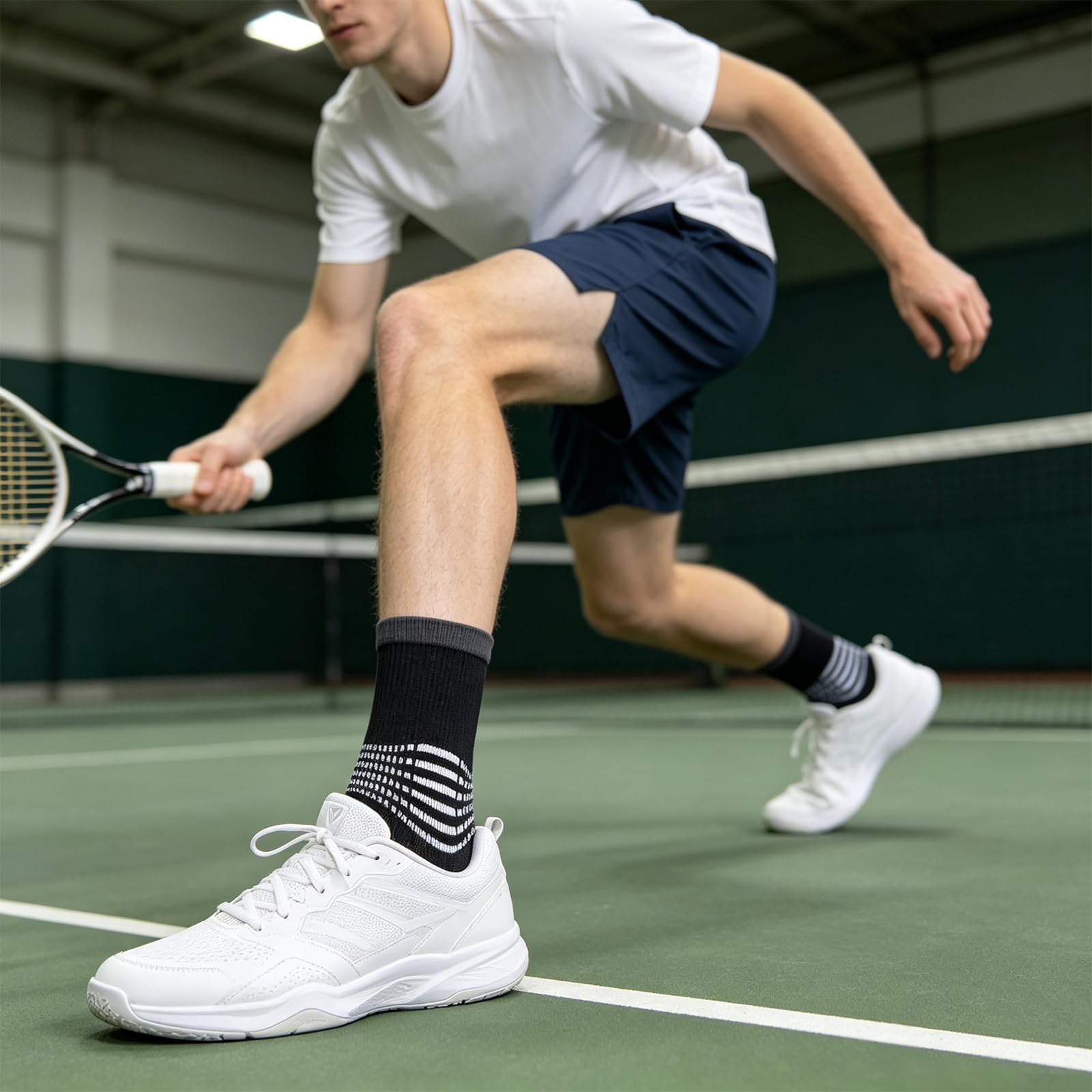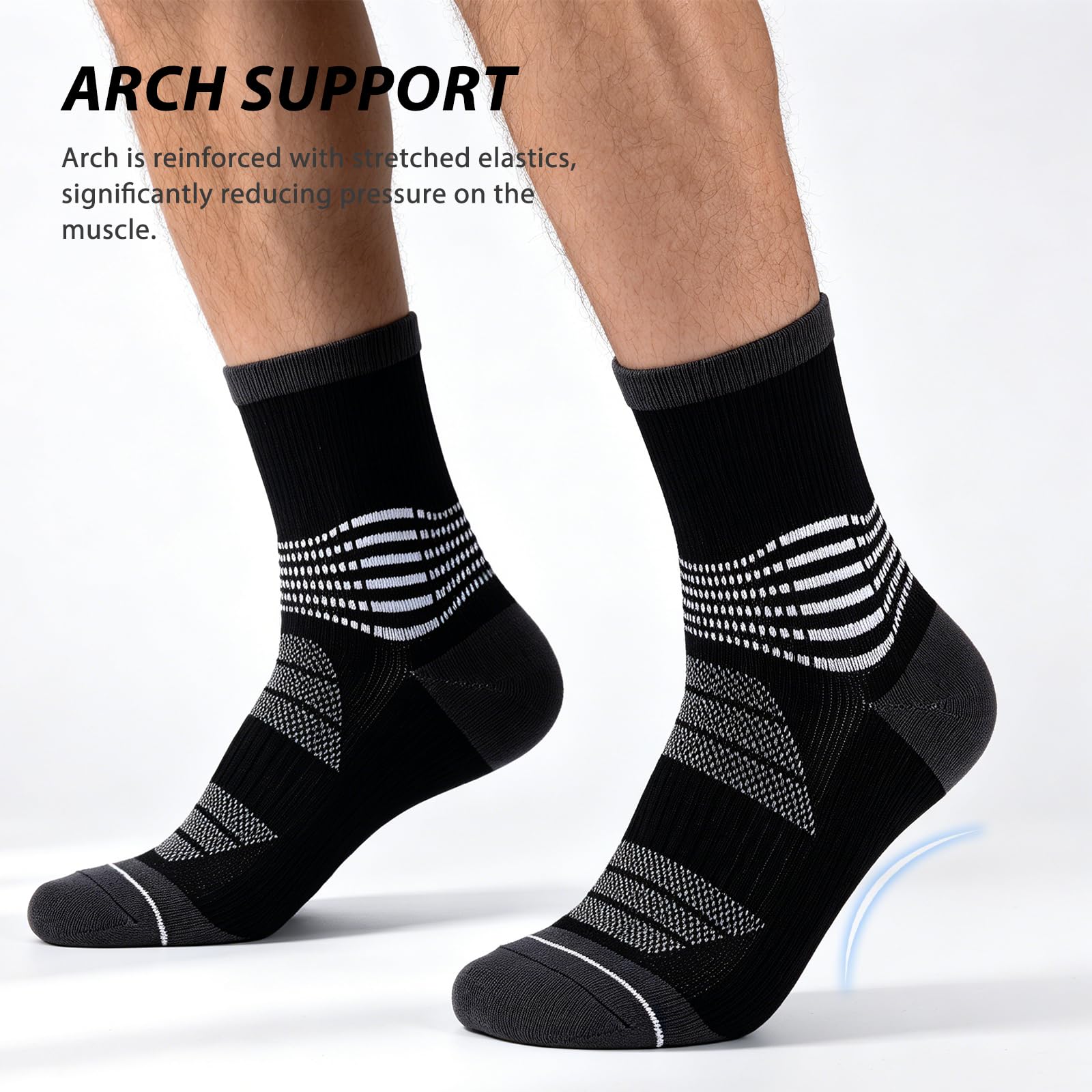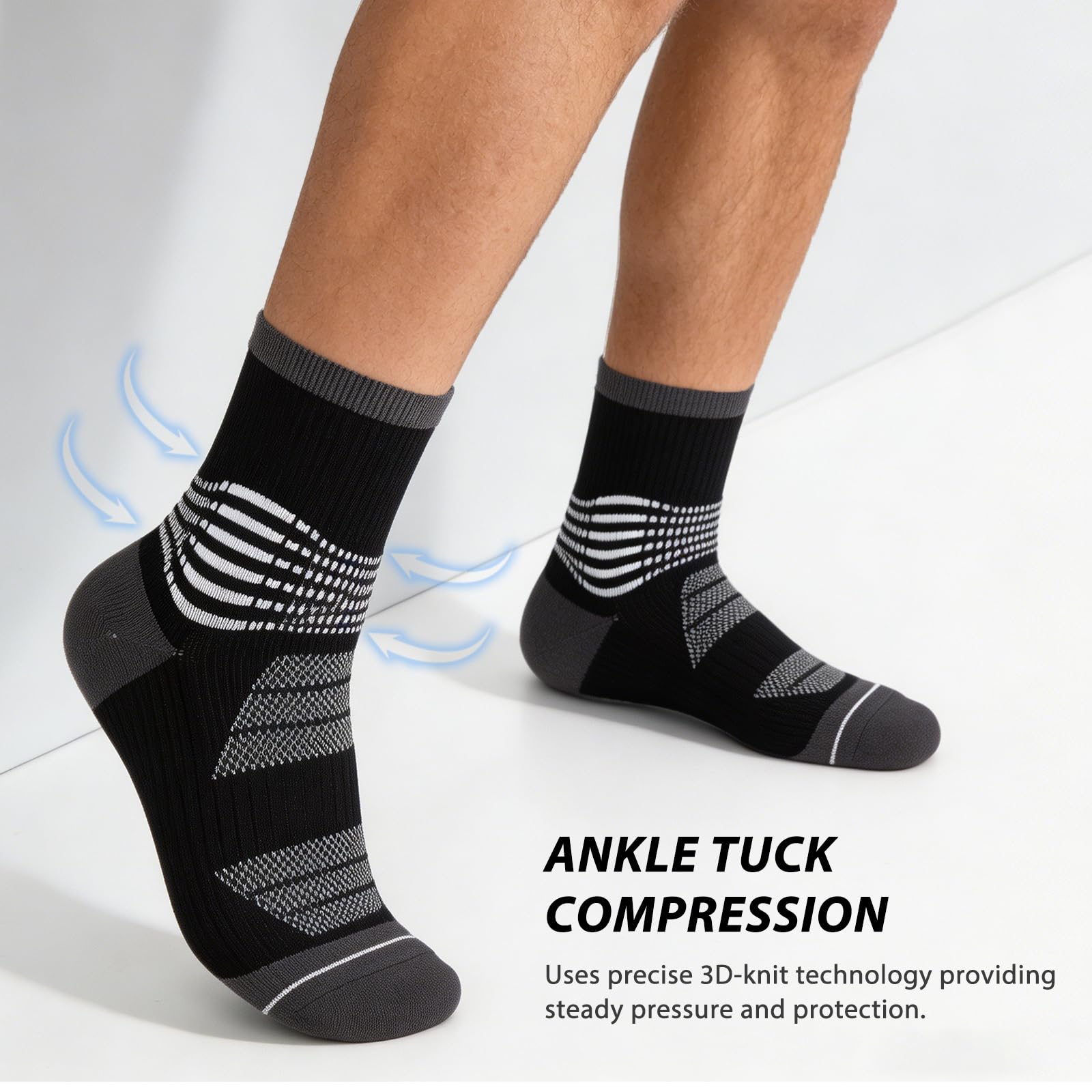 Targeted Ankle Support:The crew compression socks features 6 ankle compression rings delivering firm yet comfortable support. Perfect as ankle compression socks for women and men, this design helps stabilize your ankle during running, workouts, or long days on your feet, reducing injury risk.