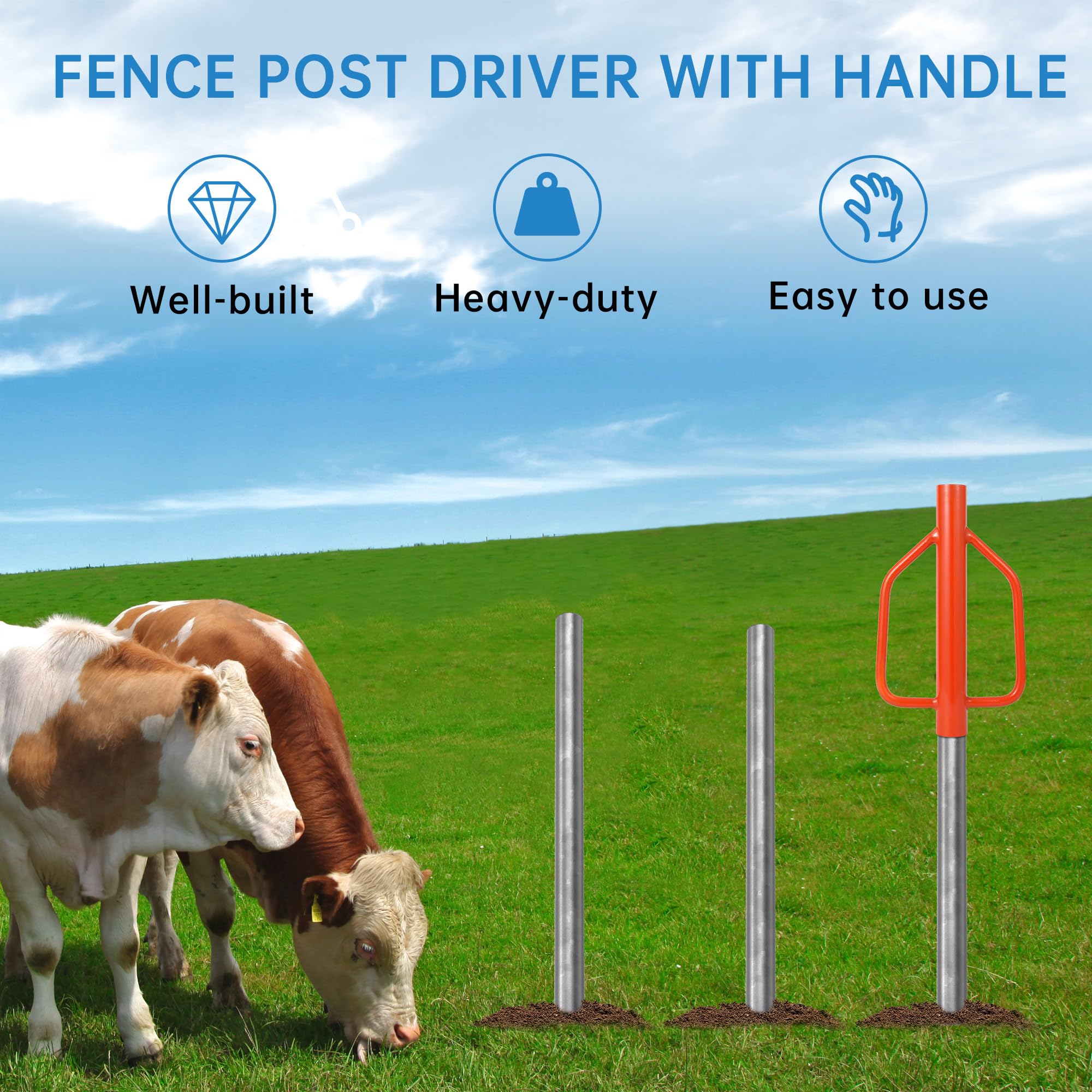 ✔ HEAVY DUTY POST DRIVER:This fence post driver is a hefty piece of metal,which is made of heavy duty steel, durability and longevity. Worked great for both driving and pulling T-Posts!Making it a reliable choice for professionals and DIY enthusiasts alike.