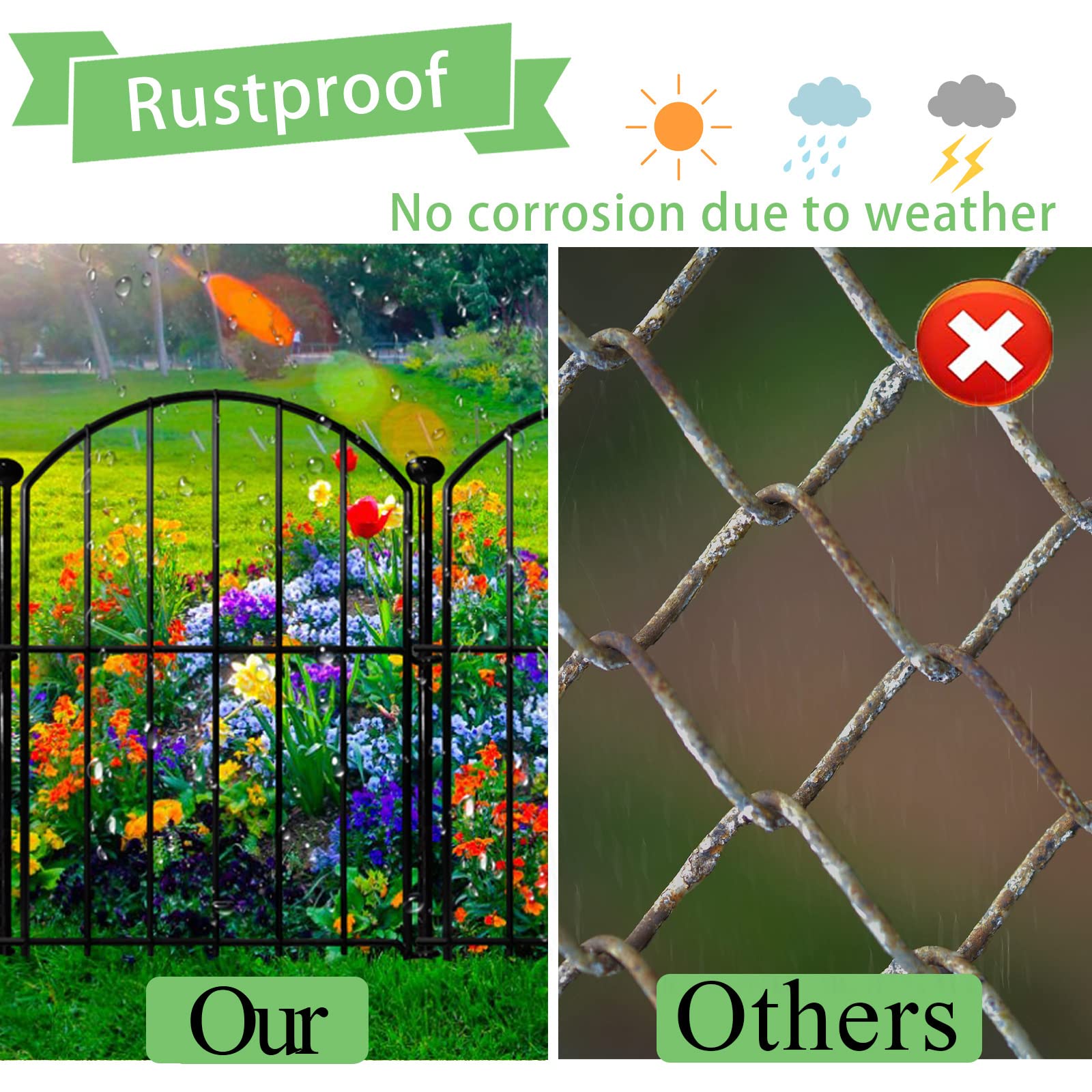 Rustproof & Durable: Make your outdoor space a charming oasis with our garden fencing. The garden border fence features an arched design and is coated with black rust-resistant material to ensure durability and making it able to withstand outdoor conditions such as exposure to sun and wind