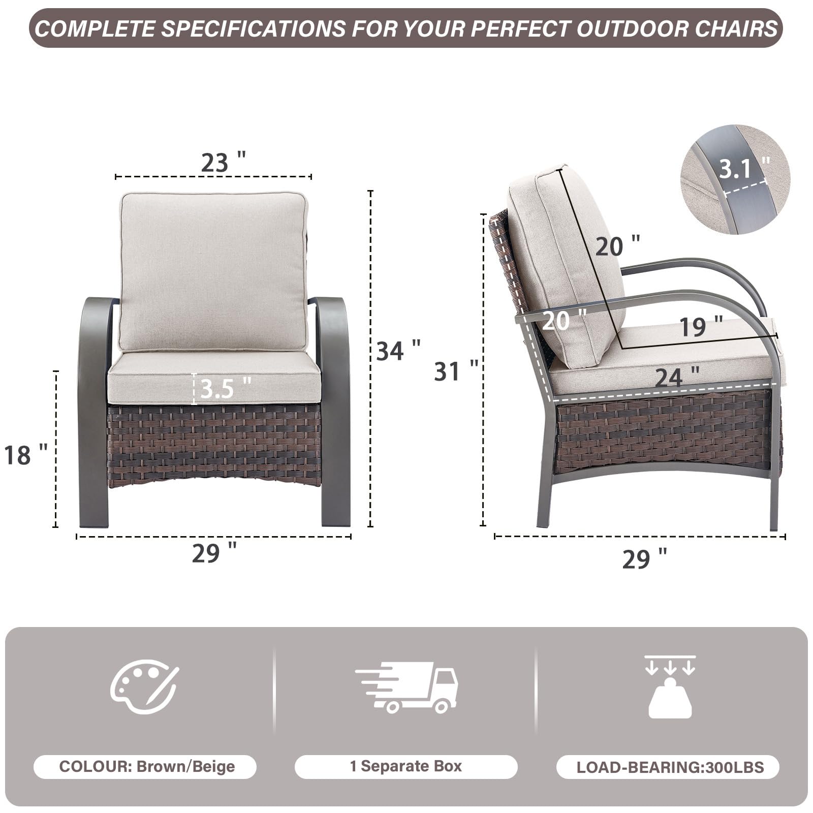 Ergonomic Design:Designed with your comfort in mind, this patio wicker furniture set chair features a high backrest and wide armrests. The ergonomic curve of the back and arms provides excellent support, reducing fatigue even after long periods of sitting. The spacious seat is perfect for users of all sizes, ensuring a relaxing outdoor experience.