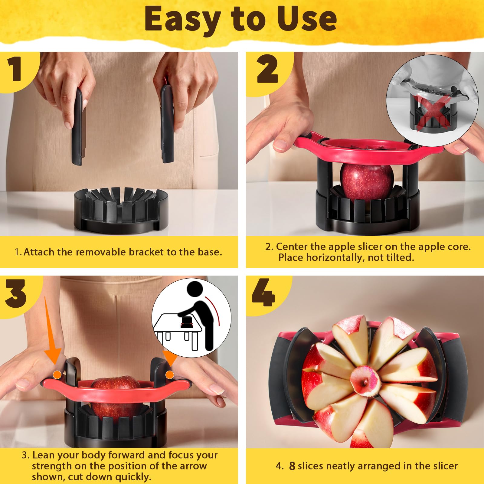 【Easy to Use】: Say goodbye to knives and corers. You can slice out 8 thin apple slices in just 5 seconds. The cutting process is super easy, and it's great for making various kinds of delicious foods and desserts.