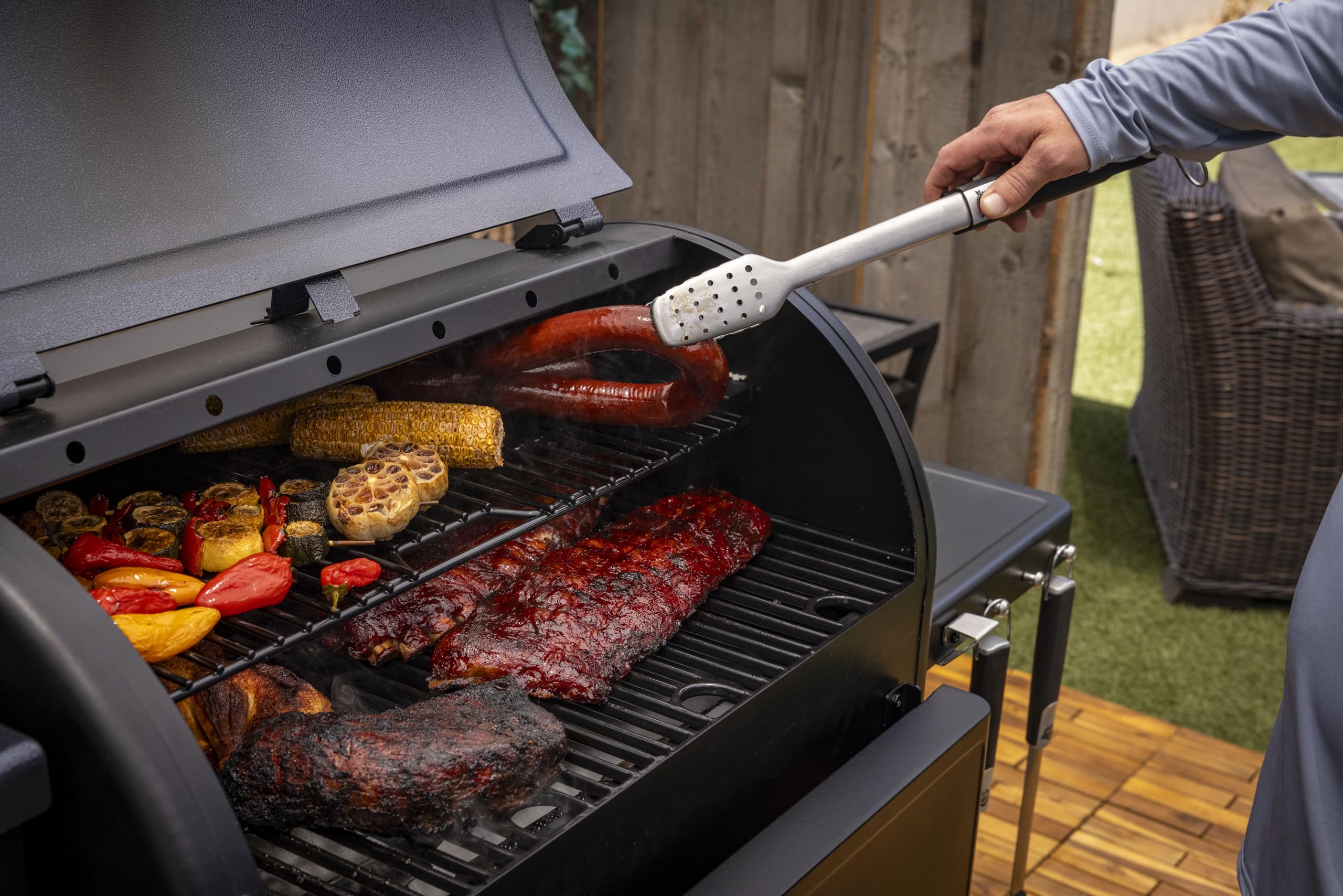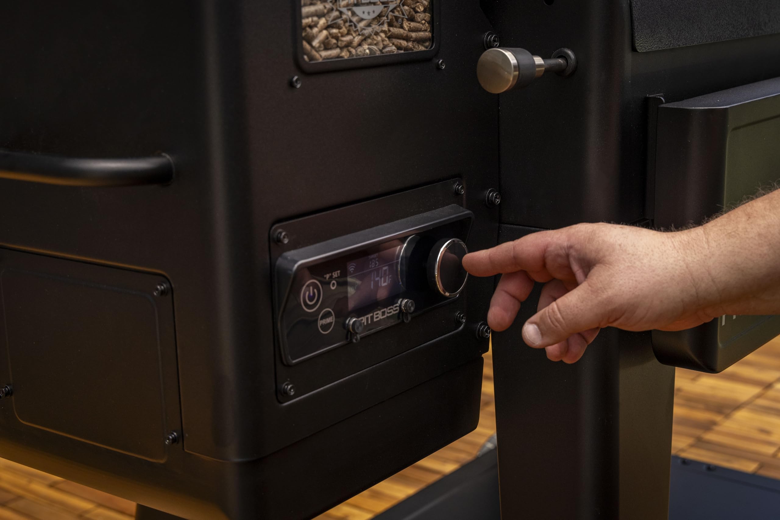 For years, Pit Boss has been a leader in wood pellet grills and smokers, offering innovative features and premium design. And now, we've done it again, taking all those innovations to create the all new Navigator series. This revamped line of wood pellet grills and smokers combines our most premium features with smart controls to navigate any outdoor cooking experience with ease. With an included folding front and side shelf, you've got all the extra space you need for food prep and storage, right out of the box. The tall, tapered legs provided a powerful, ergonomic stance for easy-on-the-back grilling. Also making your life easier is improved hopper pellet cleanout (now positioned underneath to let gravity to do its thing), easy ash cleanout with the removeable undermount burn pot, and a rapid igniter to get grilling faster than ever before. On the inside, fueled by 100% hardwood pellets, the Navigator Series is designed to make your backyard the premier destination for world-class BBQ. Controlled by the latest Pit Boss digital controller, you have 5° increment settings and the Wi-Fi® and Bluetooth® technology so you can take full control of your grill from anywhere using the Pit Boss Grills app.