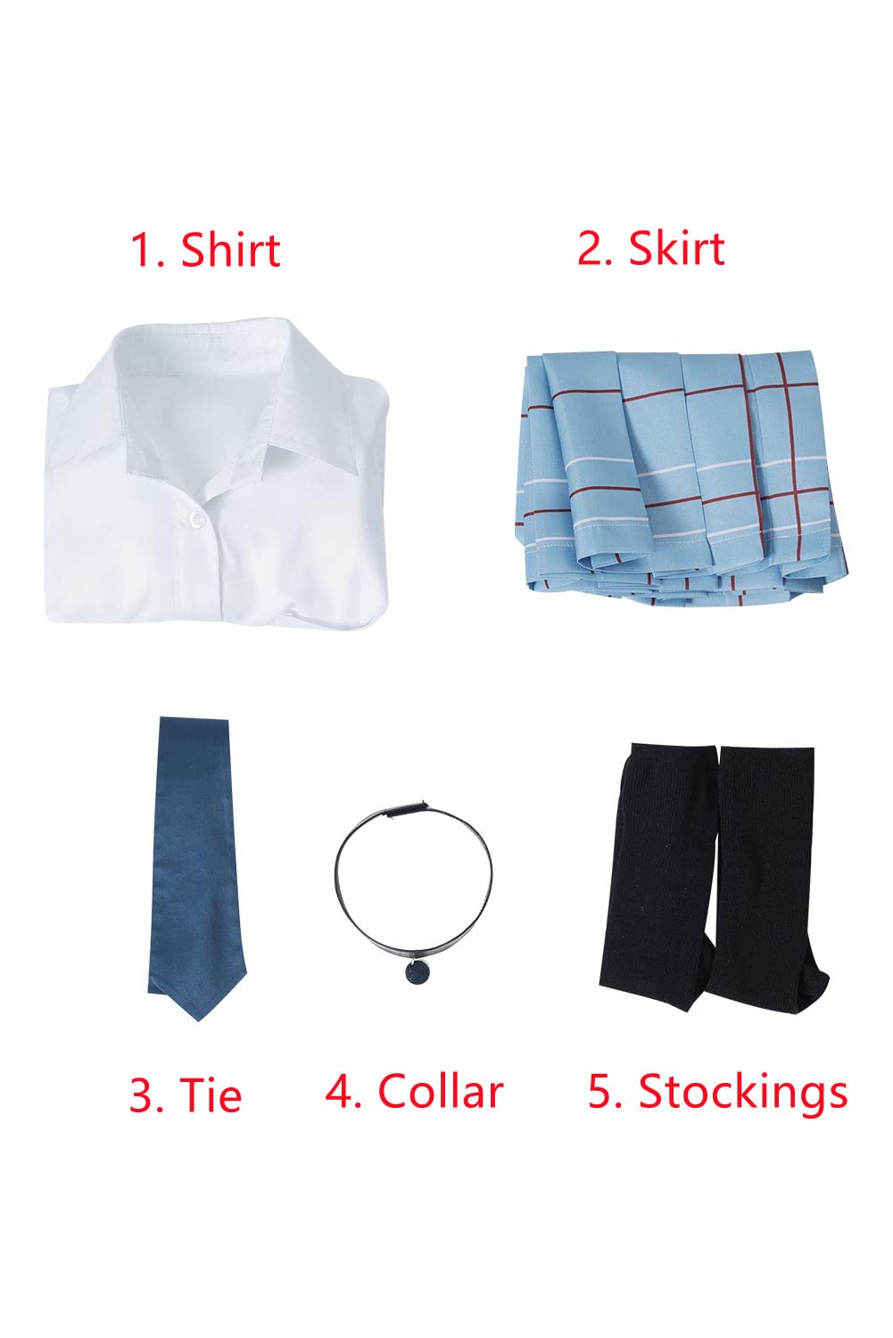 Package include: blouse shirt + bule pleated skirt + necktie + stockings + collar. 100% brand new.
