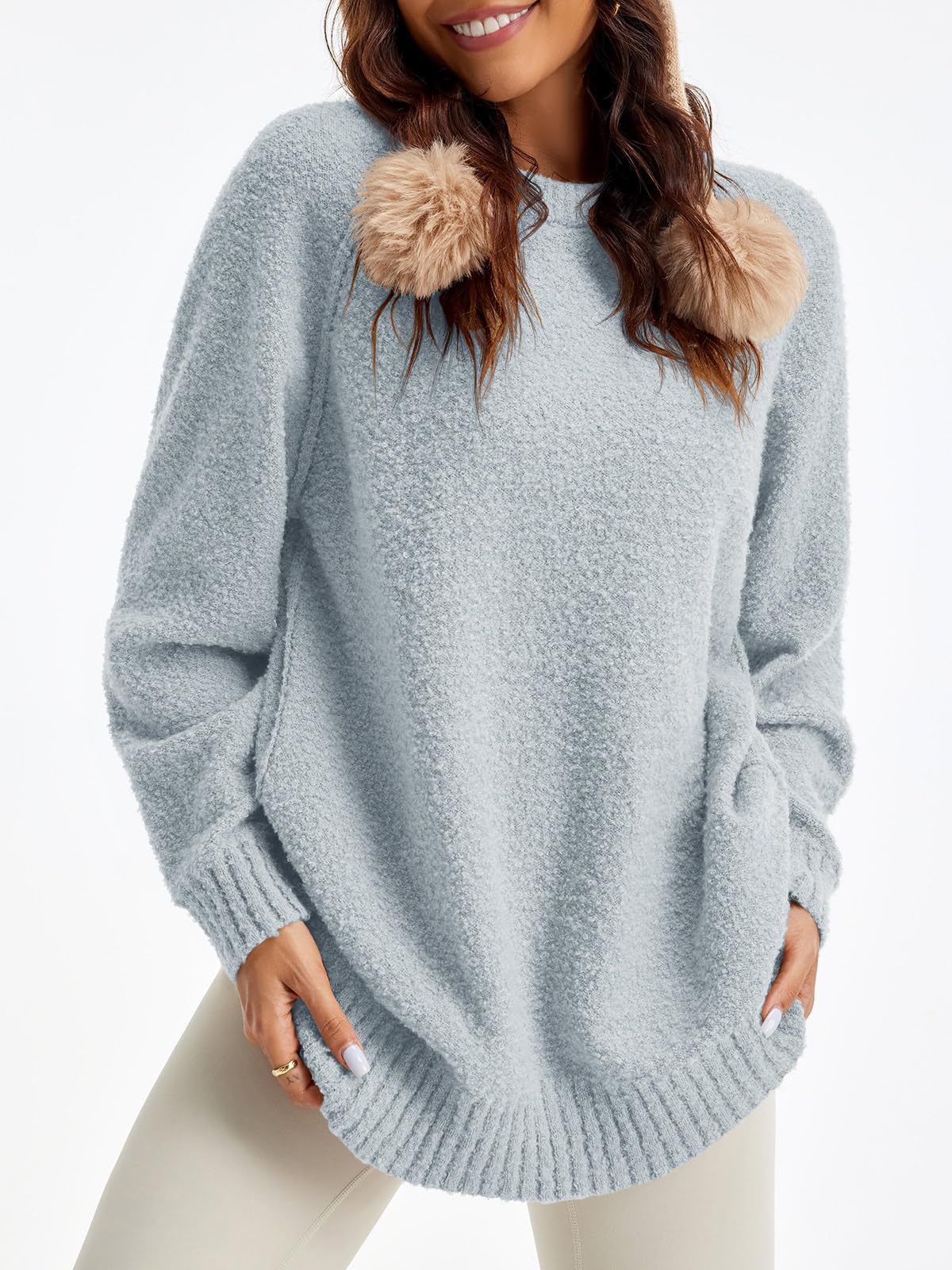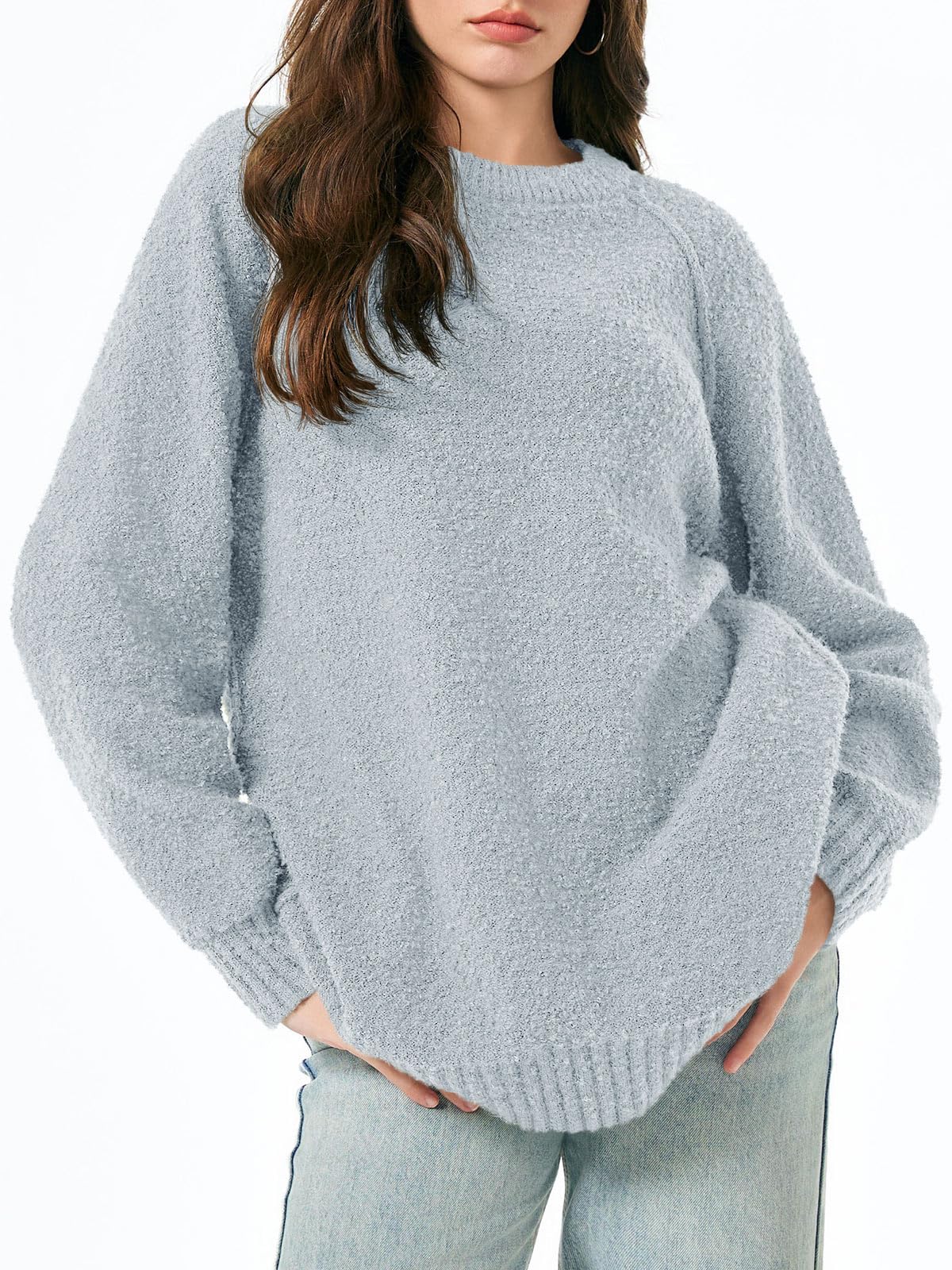 Features: Fuzzy fabric, oversized, long sleeve, ribbed knit hem, crew neck, drop shoulder, casual slouchy style, loose fit, solid color. The fuzzy sweater for women is good for early spring, fall and winter days.