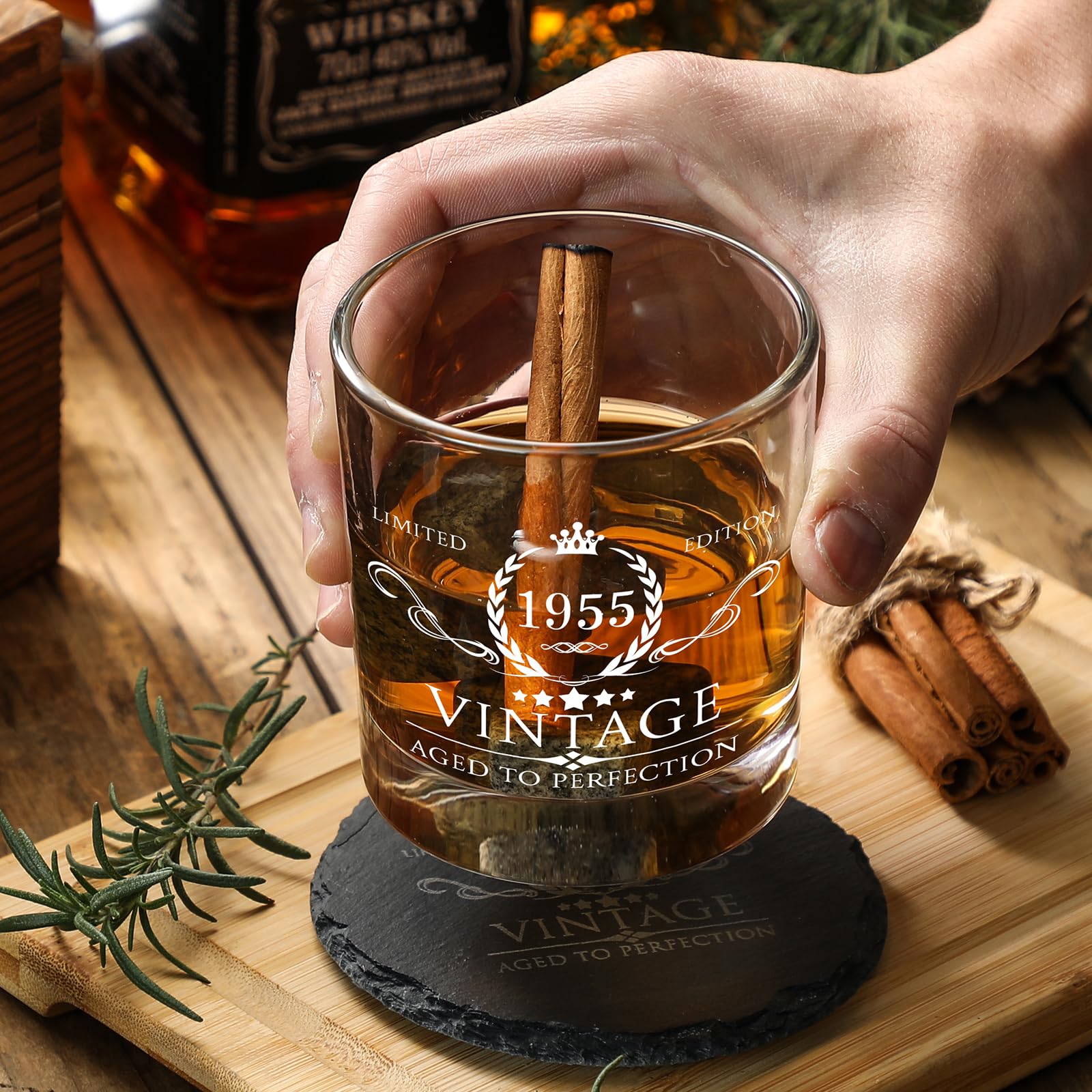 Unique Limited Edition Logo - Except the stones and card, all other parts are printed with pattern (refer to the images). Especially the milestone whisky glass cup, the unique '1955' sign represents the 70th birthday or 70th anniversary day