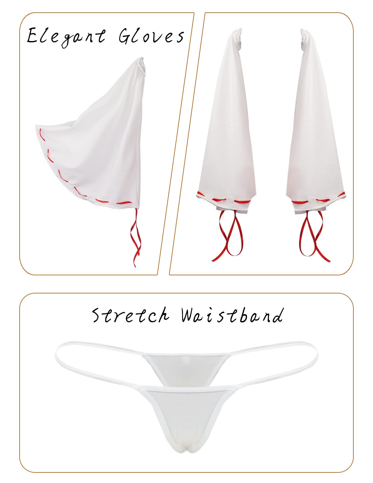 🎀【PACKAGE INCLUDES】:This sexy cosplay lingerie set includes: x1 Halter Top; x1 panties; x2 Gloves