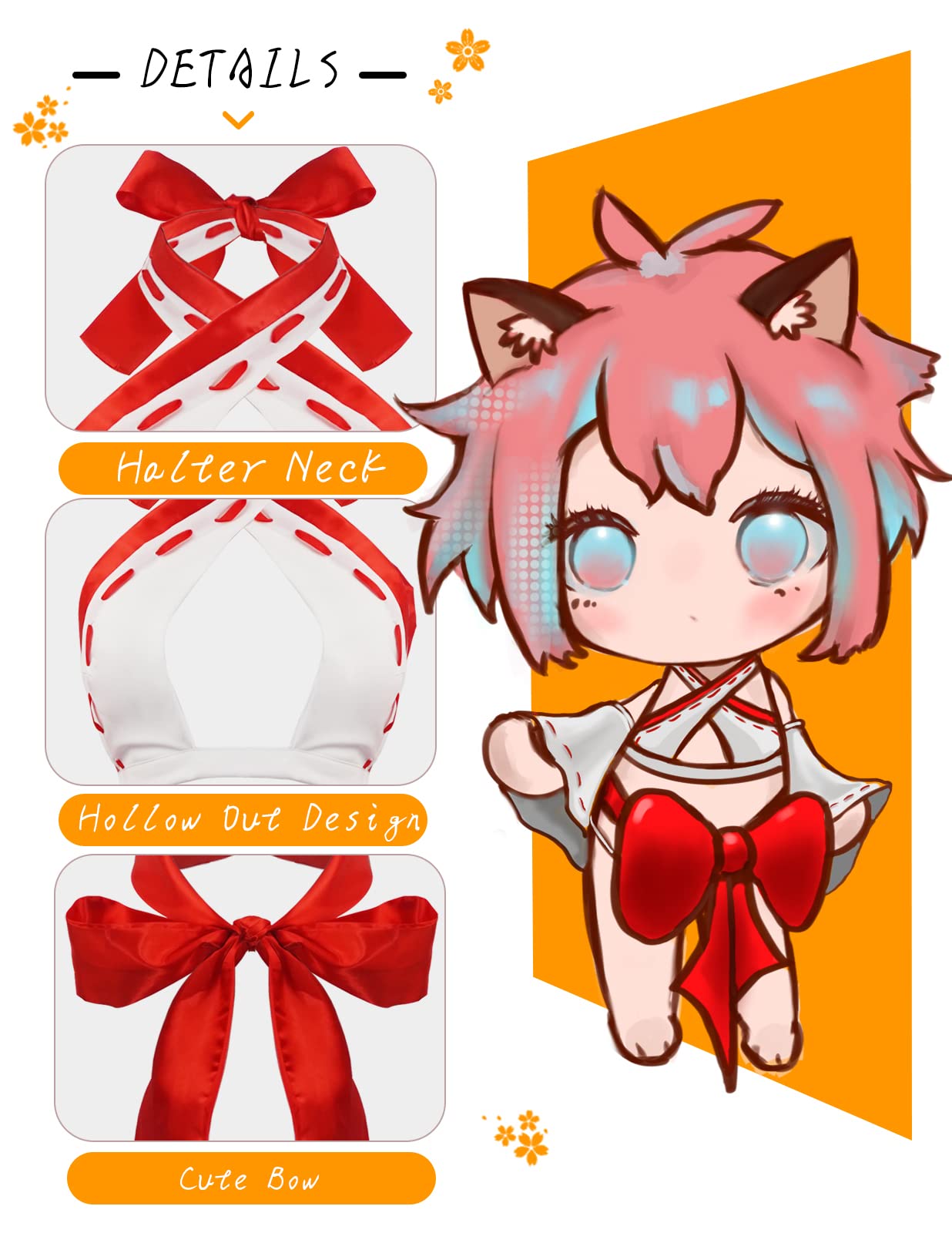 🎀【MATERIAL & STYLE】:The kawaii miko cosplay costumes set is made of breathable and stretchy fabric, soft to wear. In contrast to traditional Japanese suits, we have modified the long sleeves to be sleeveless, adding two sleeves and turning the long skirt into a short skirt, so you can show your perfect body.