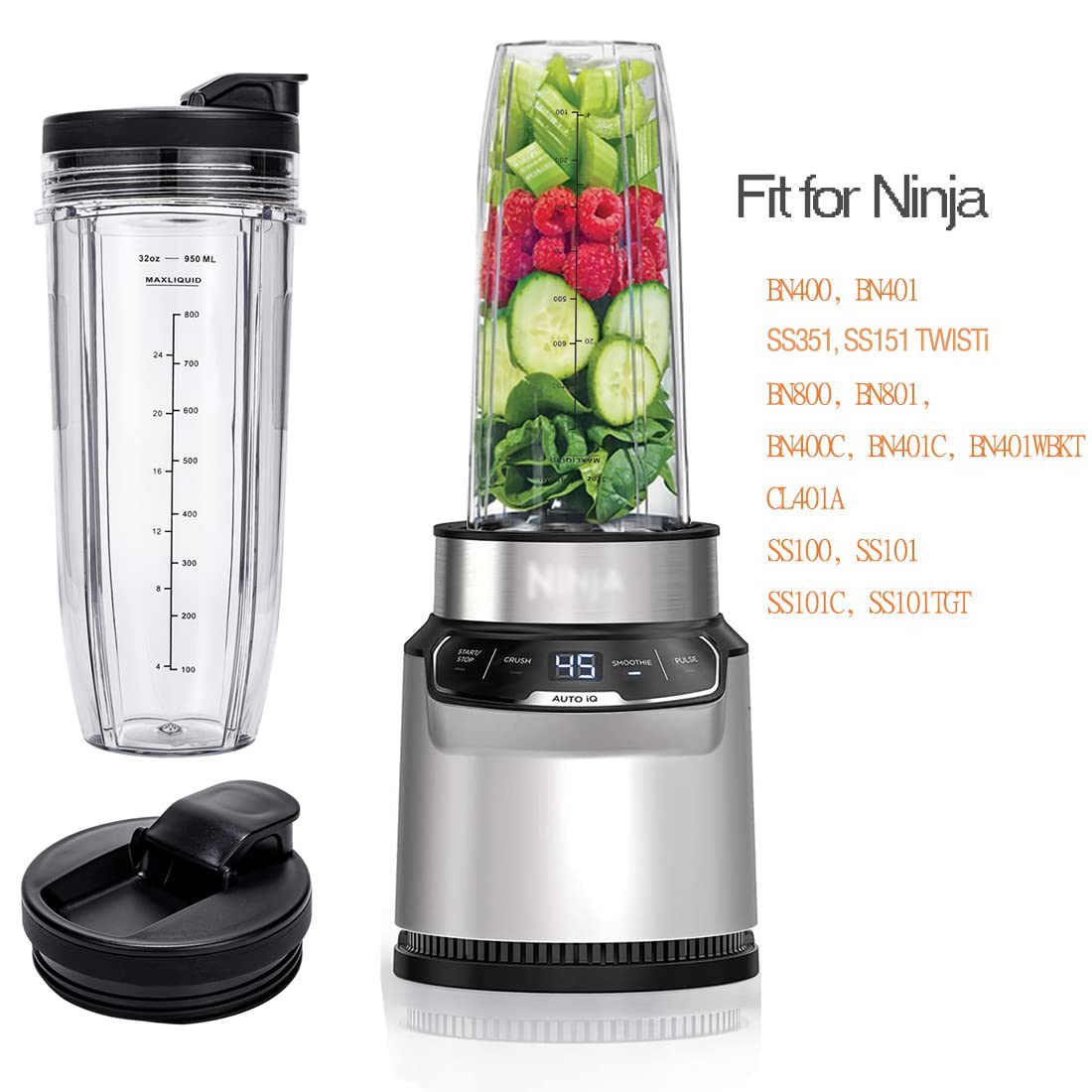 These replacement Cups fit ninja BN401 Nutri Pro, SS351, SS151 TWISTi DUO SS100, SS101, BN400,BN800, BN801, BN400, BN400C, BN401C,BN401WBKT, CL401A, SS101C,SS101TGT Blender.