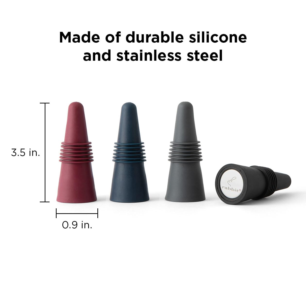 FOOD SAFE MATERIALS: These wine bottle stoppers are made of food-grade silicone and stainless steel that won't change the flavor of your wine or beverage.