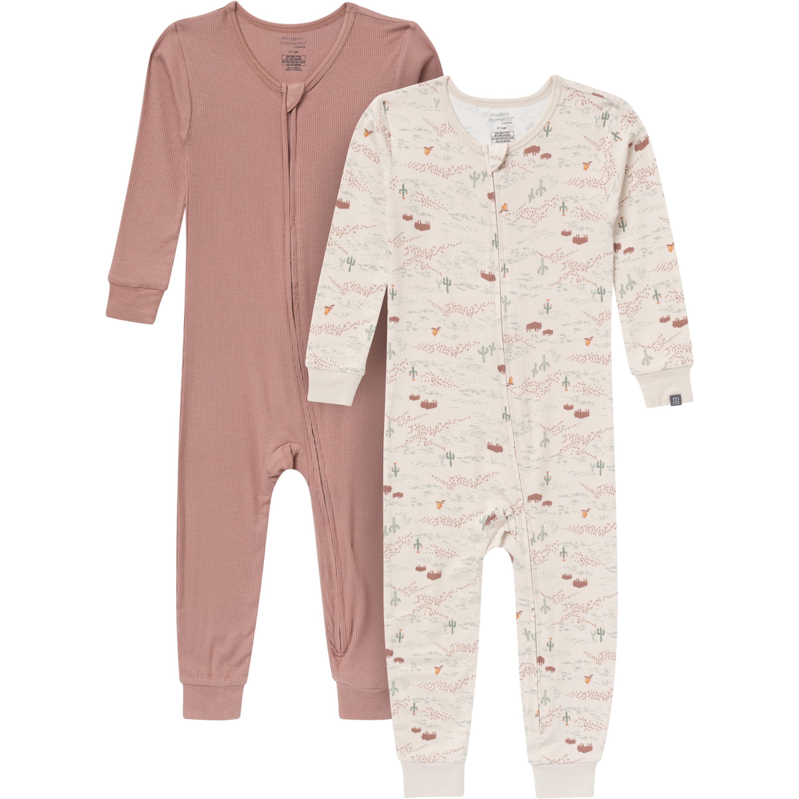 Description These two pairs of snug-fitting pajamas are perfect for your baby or toddler's bedtime adventures! Crafted from super soft viscose with spandex for a slight stretch, they include a full-length zipper with a neckline protector for quick and easy dressing. Cinched wrists and ankles offer a cozy, flexible feel, and the rounded neckline ensures a comfortable night’s sleep. With delightful prints and colors, they'll love picking their favorite to wear to bed.