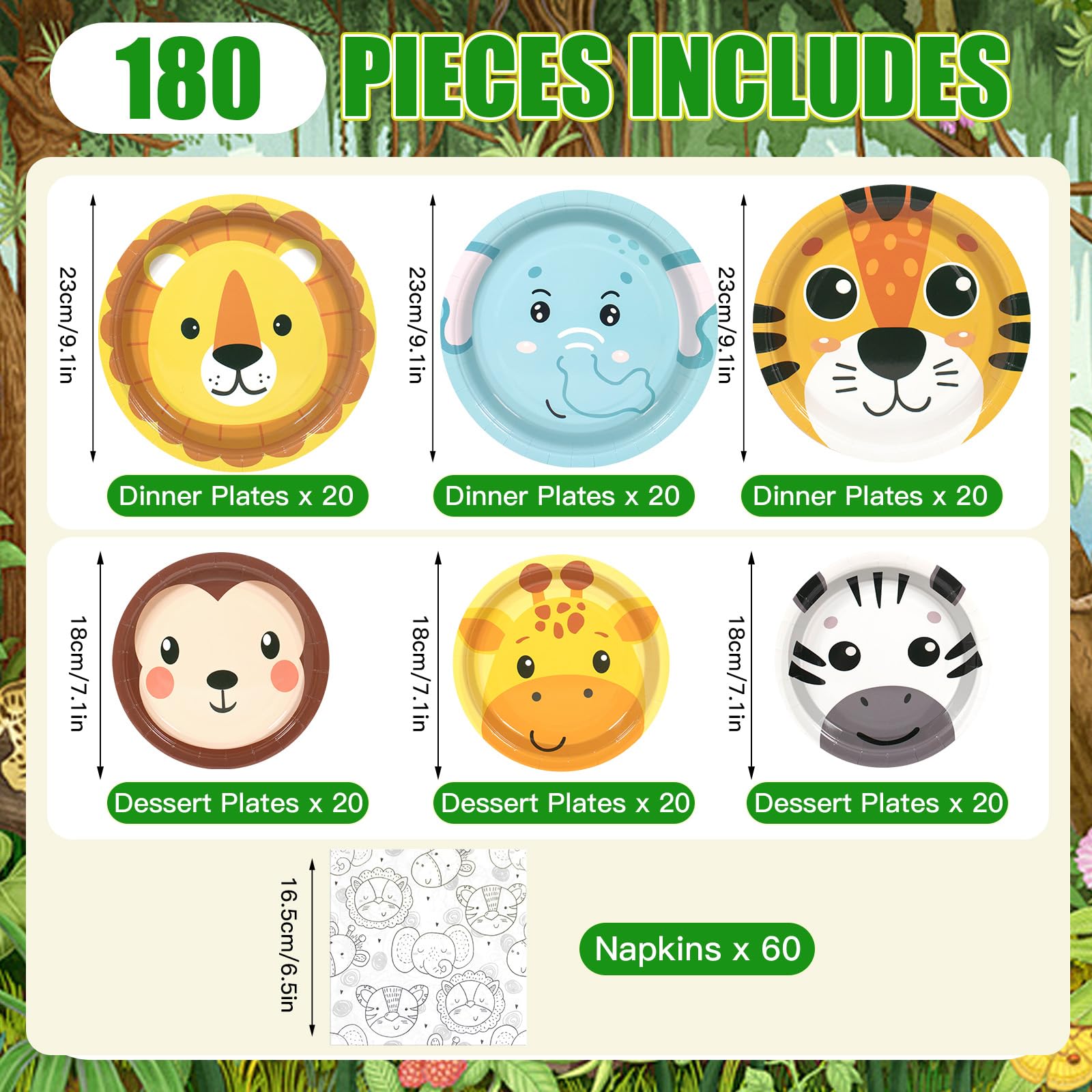 180 Pcs Plates and Napkins Set: This set includes 60 dinner plates (9.1"), 60 dessert plates (7.1"), and 60 napkins, perfect for serving up to 60 guests. From casual dinners to large celebrations, this all-in-one solution ensures a stylish, hassle-free dining experience every time