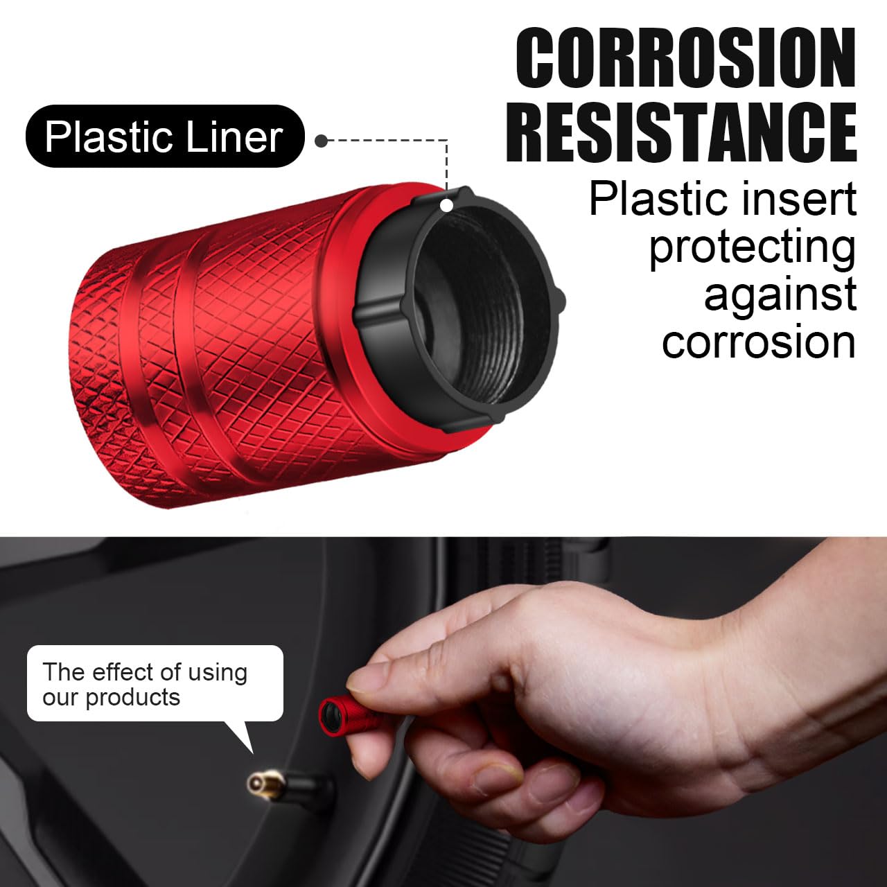 CORROSION RESISTANCE - Our tire valve stem caps feature a metal shell and plastic insert, protecting against corrosion, especially in wet and cold conditions.