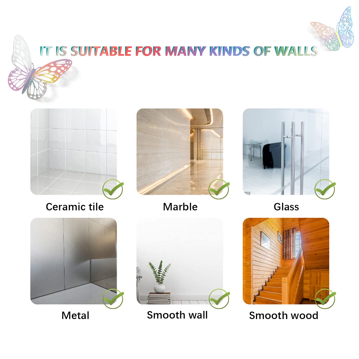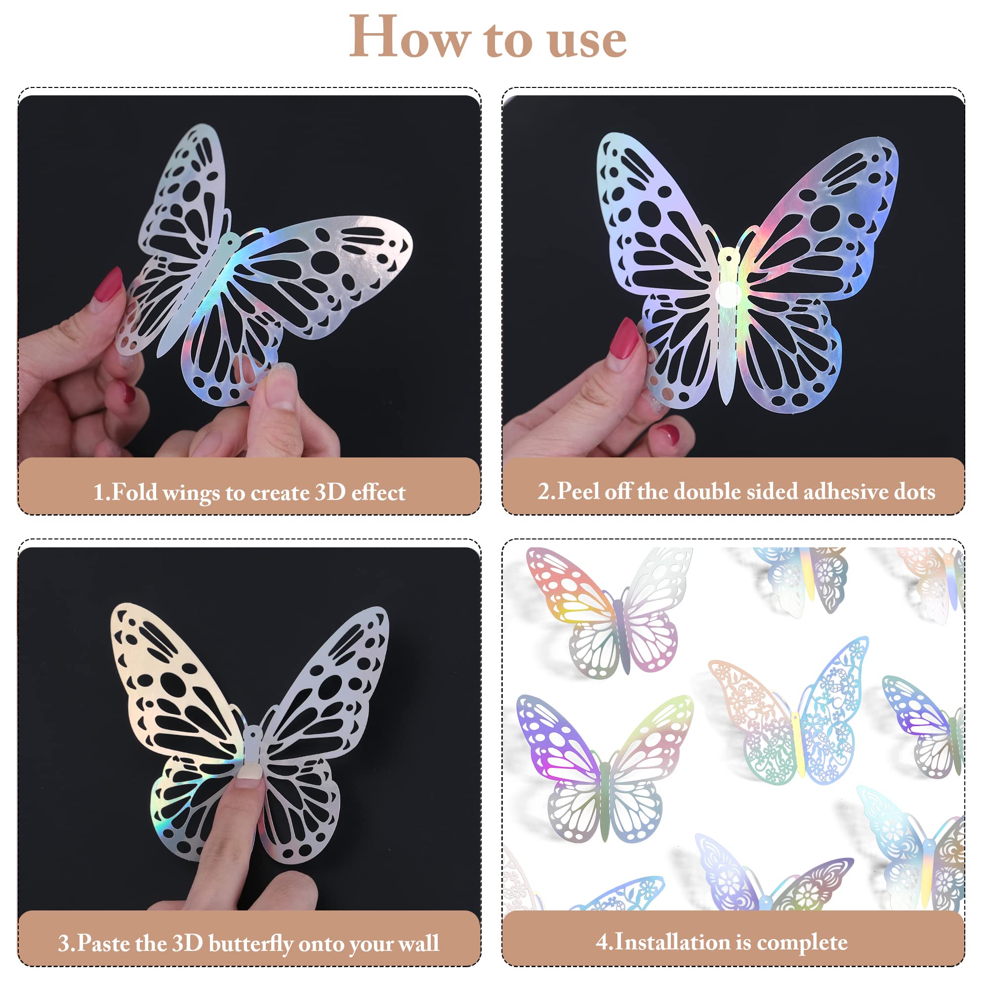 【Package Included】72 pcs butterfly wall stickers: 24 pcs Style 1, 24 pcs Style 2, 24 pcs Style 2, each style has 3 sizes(3", 4", 5") and each size has 8 pcs. Coming with 72 pcs double sided adhesive dots.
