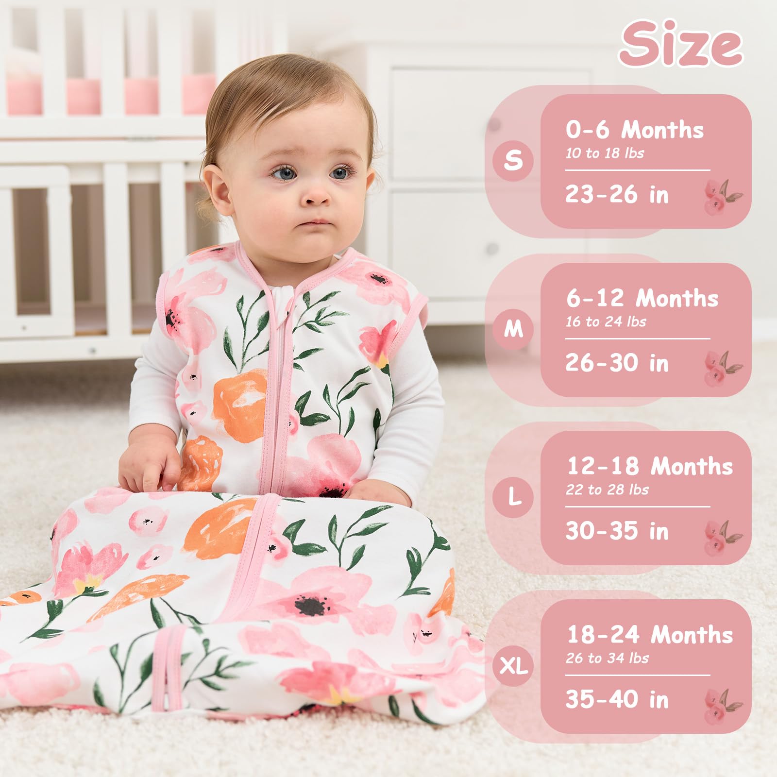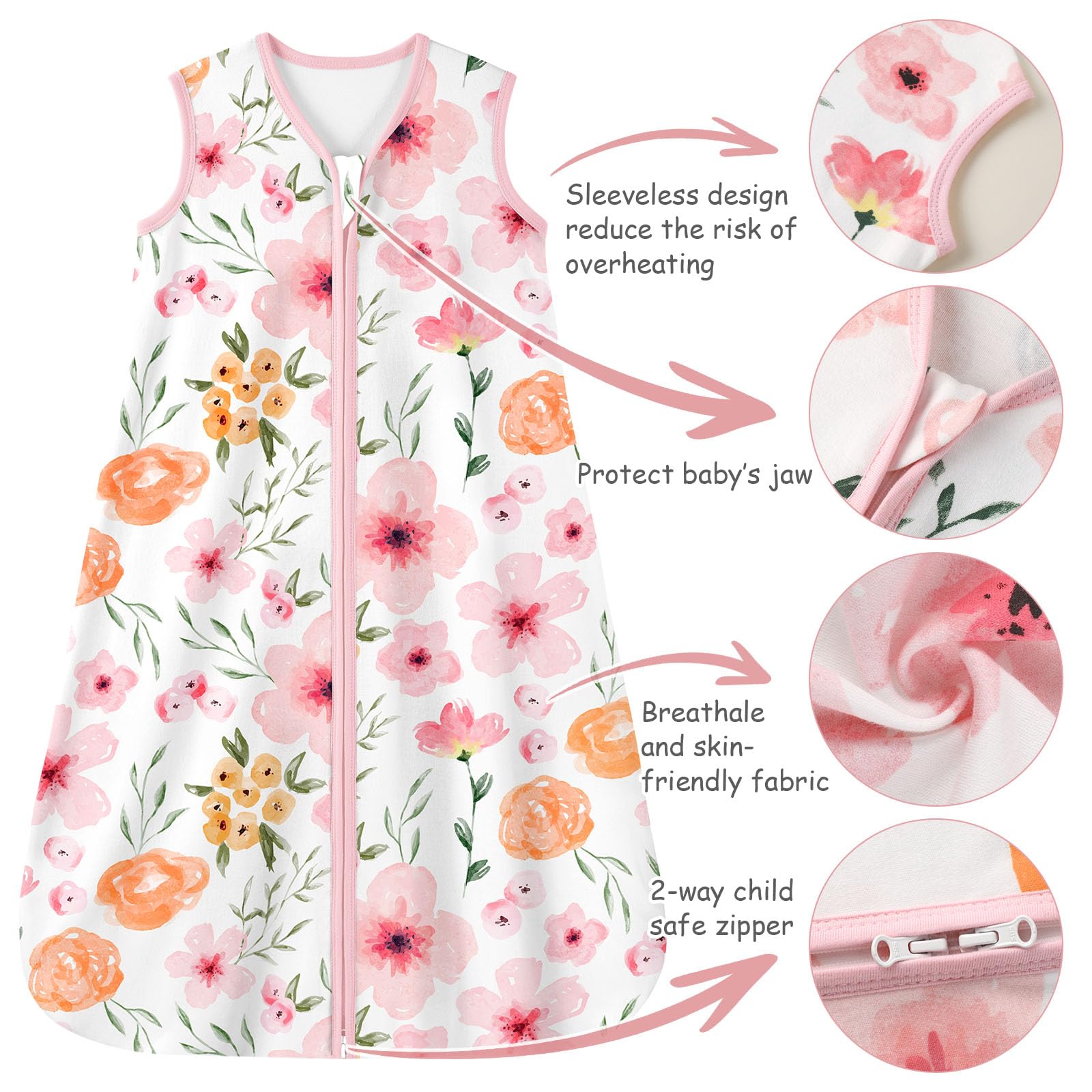 Lightweight 0.5 TOG : 0.5 Tog baby sleeping bag is suitable for moderate temperatures of 75 to 80°F, which is an ideal choice for spring, summer, autumn or naps in air-conditioned rooms, helping to maintain a stable body temperature. The sleeveless design keeps your baby warm and comfortable while reducing the risk of overheating.