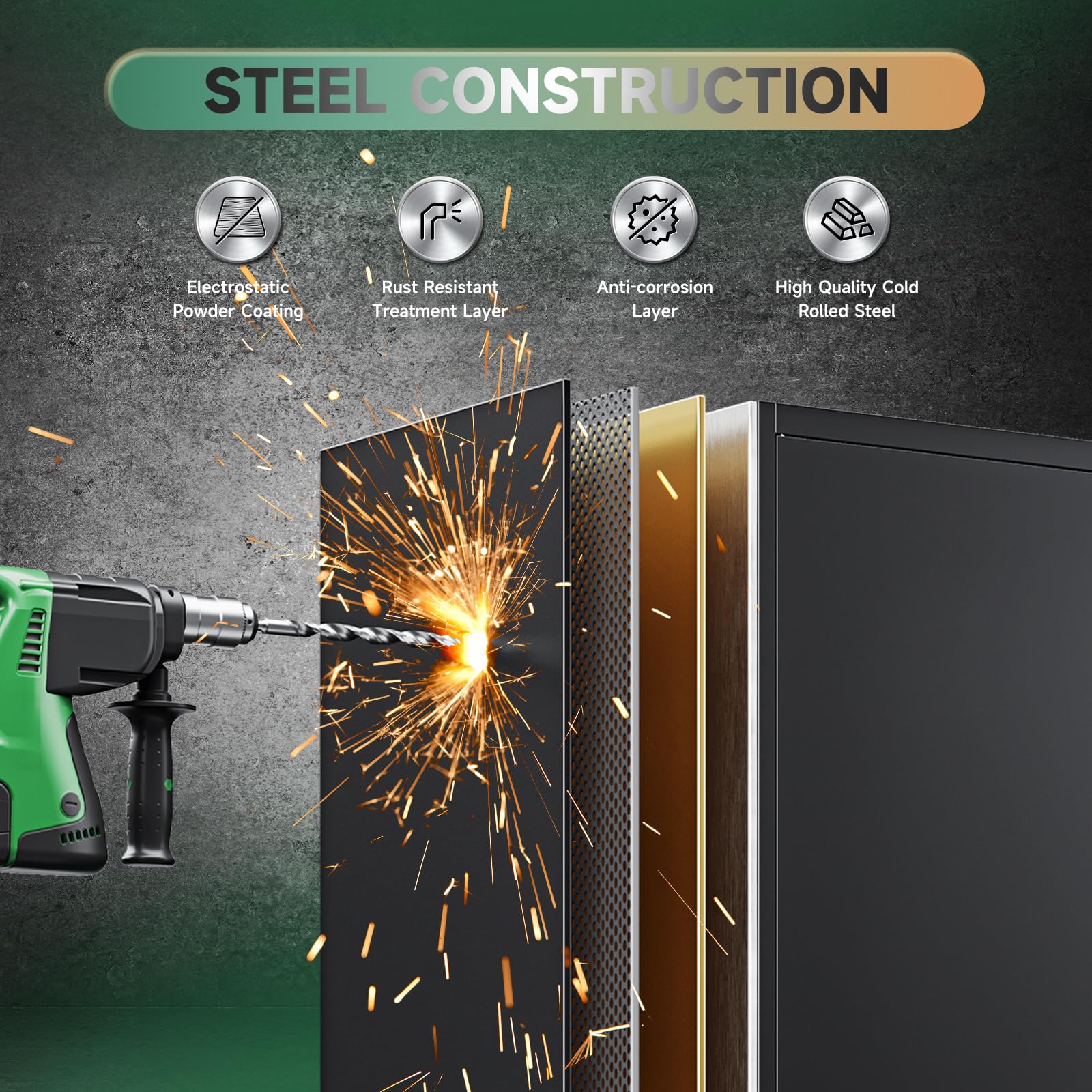 Professional Design: Metal cabinet adopts an upgraded version of the three-point lock system, and the steel rods are thickened to provide higher security for your valuables and important items;anti-collision reinforcements, keeping quiet while protecting when you opening or closing the door;Adjustable feet can ensure the balance of the metal cabinet in various environments;pre-holes on the back, enable to be mounted to the wall