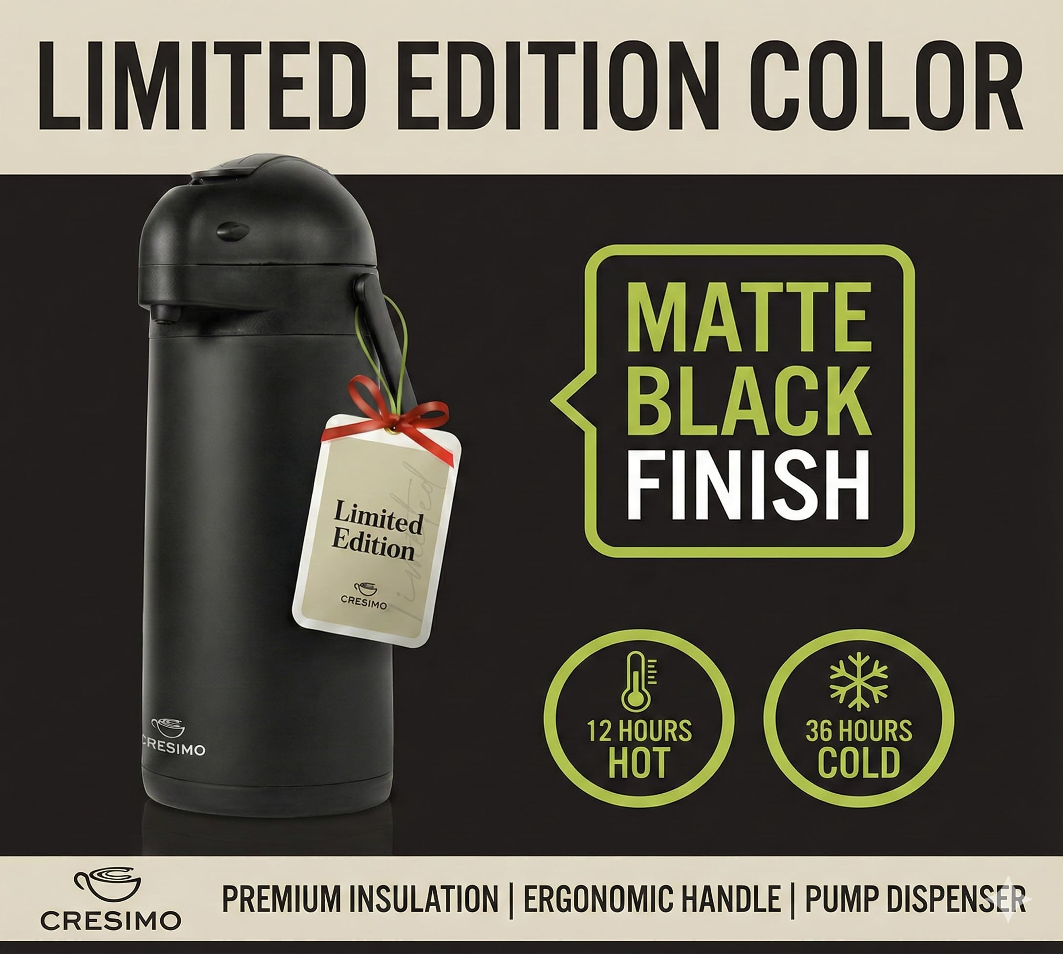 DURABLE & FOOD-SAFE β A Cresimo thermal coffee carafe built for daily use: stainless-steel interior/exterior with BPA-free contact parts and a sleek matte-black finish that elevates any counter.