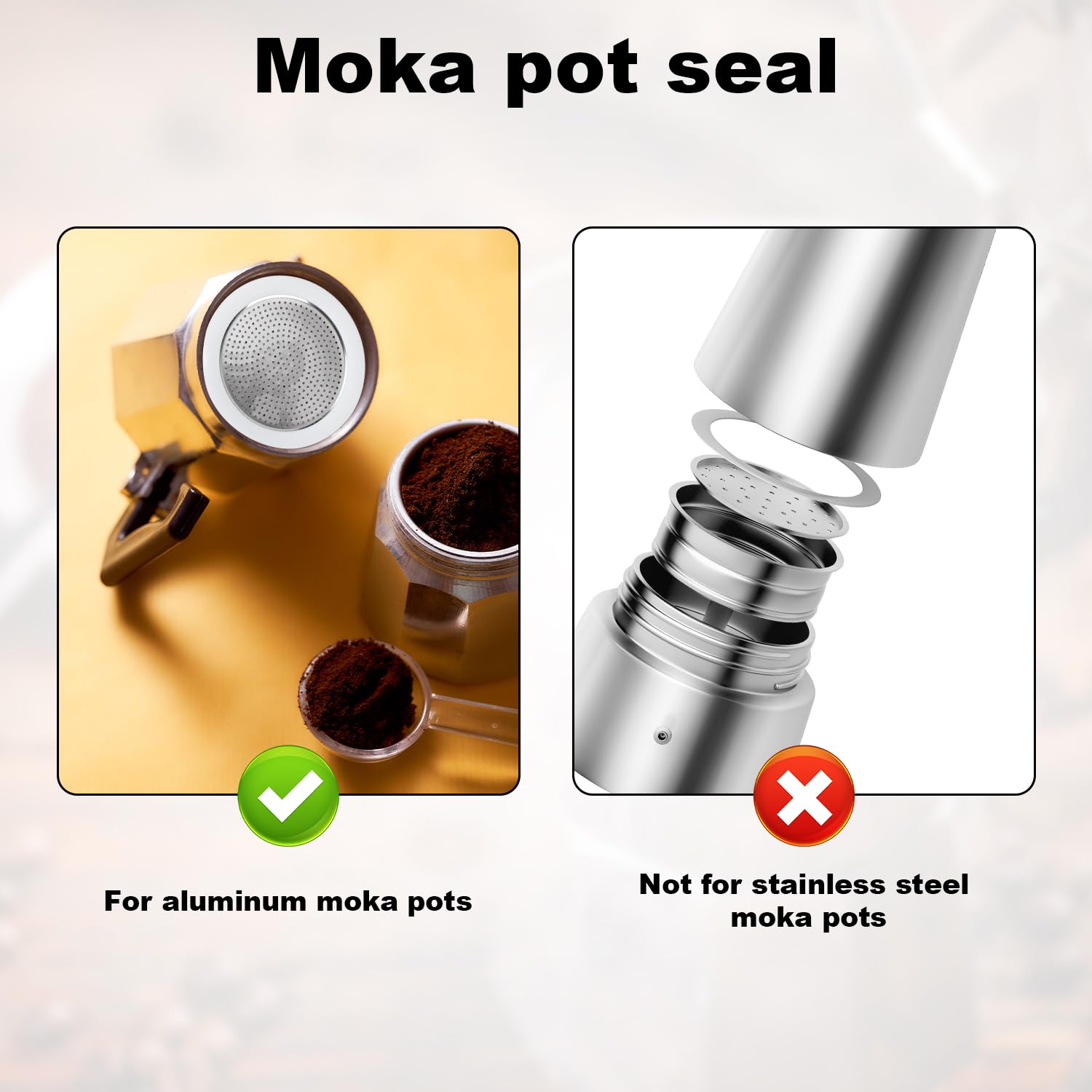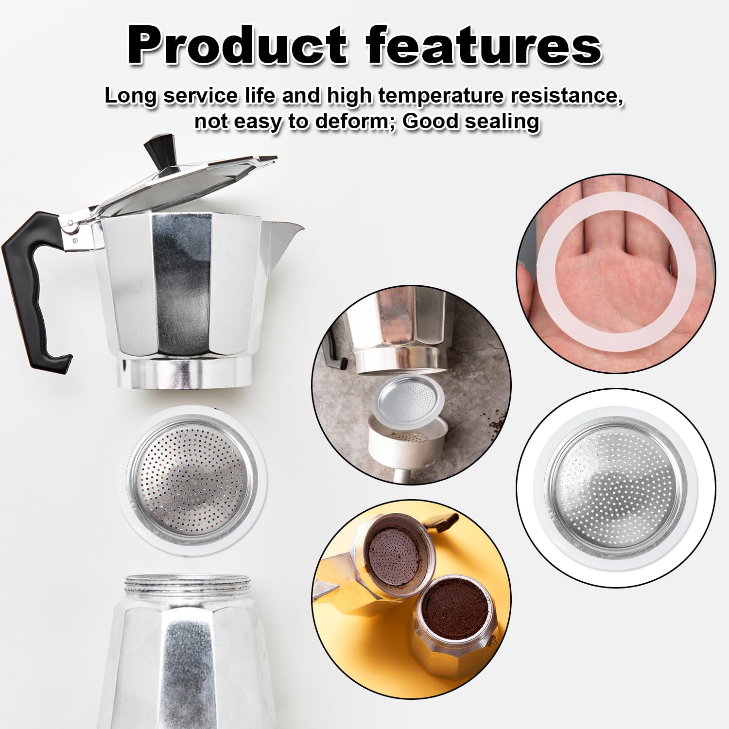 Easy to Use: The installation process of the filter and gasket is easy. Take off the old gasket and install the new moka pot seal ring replacement easily.