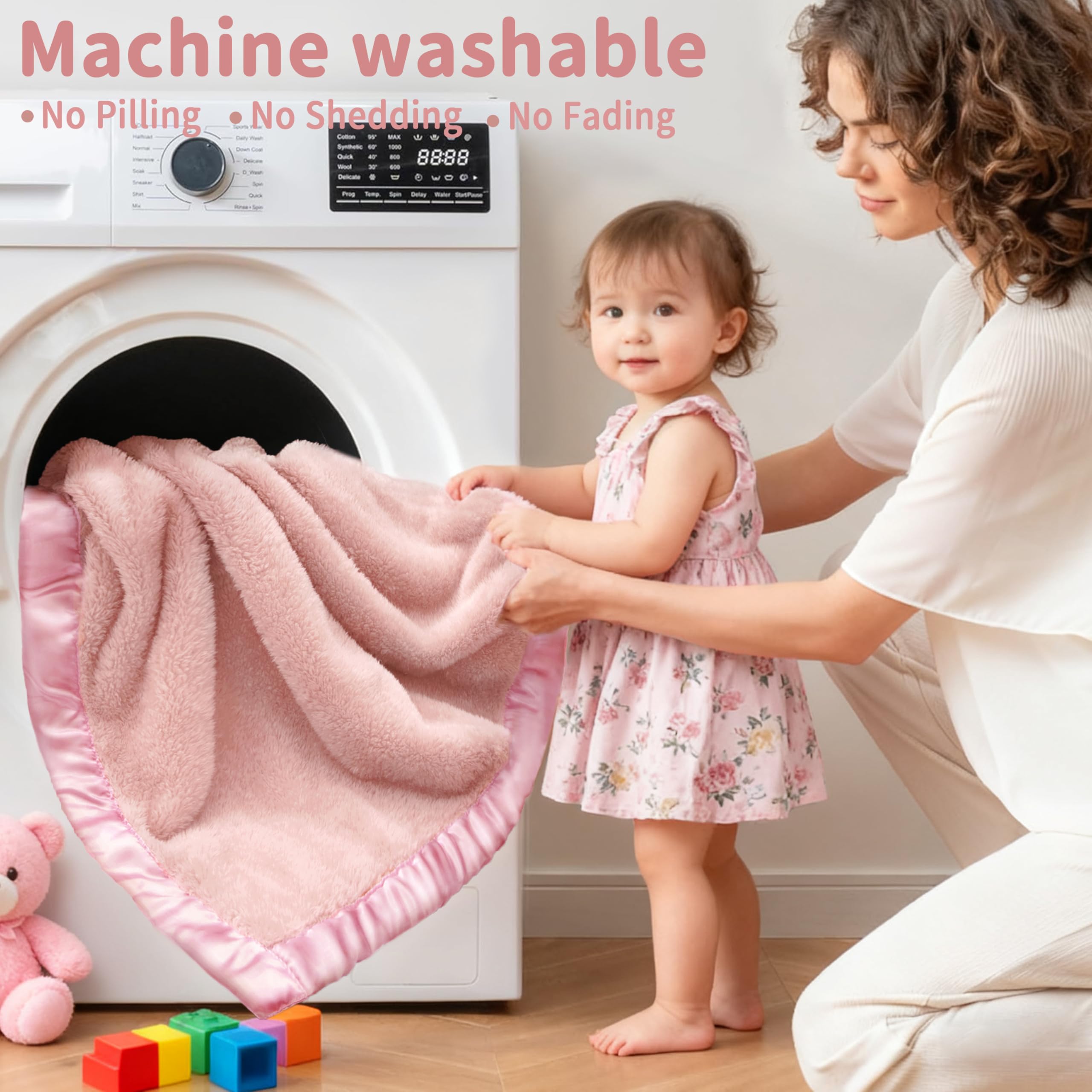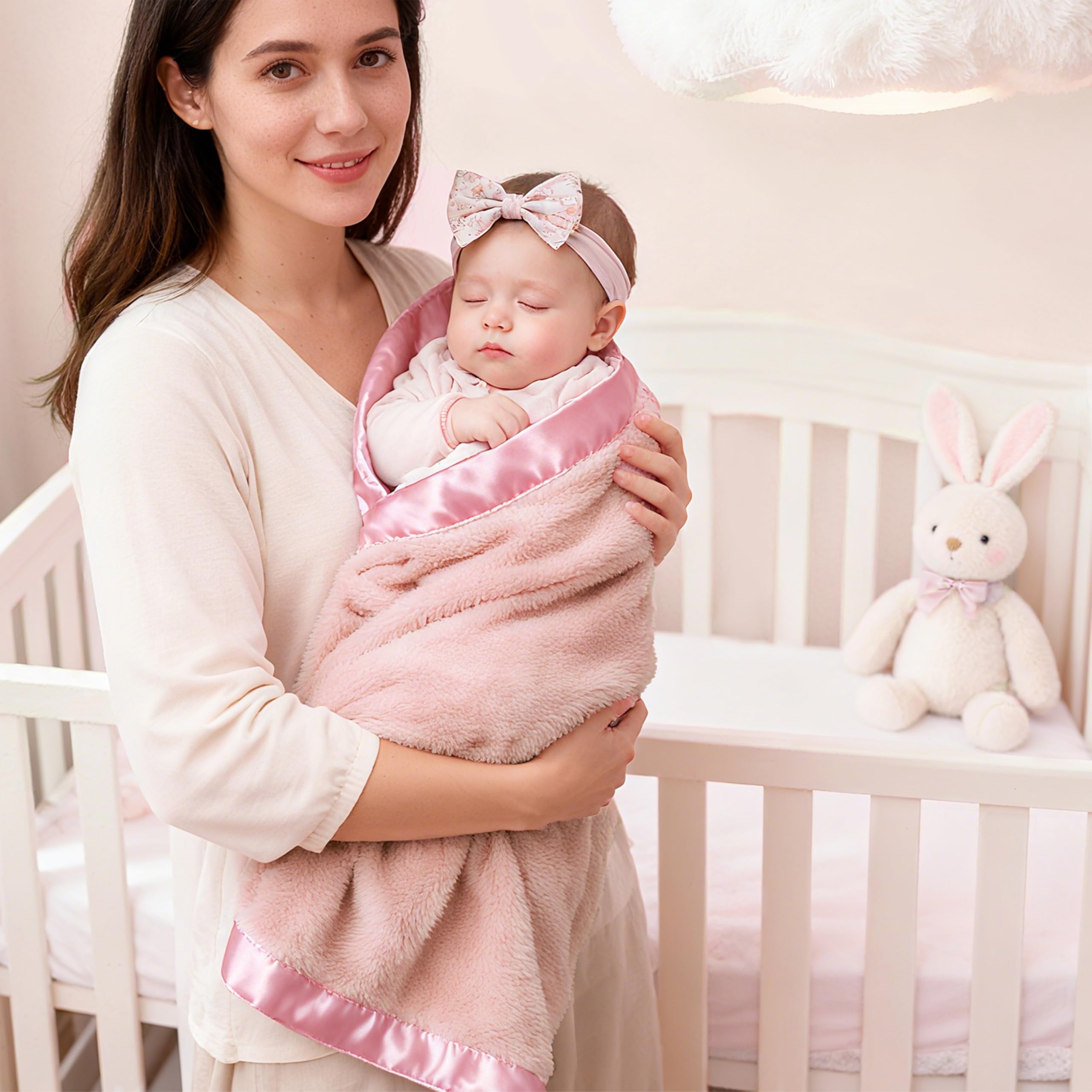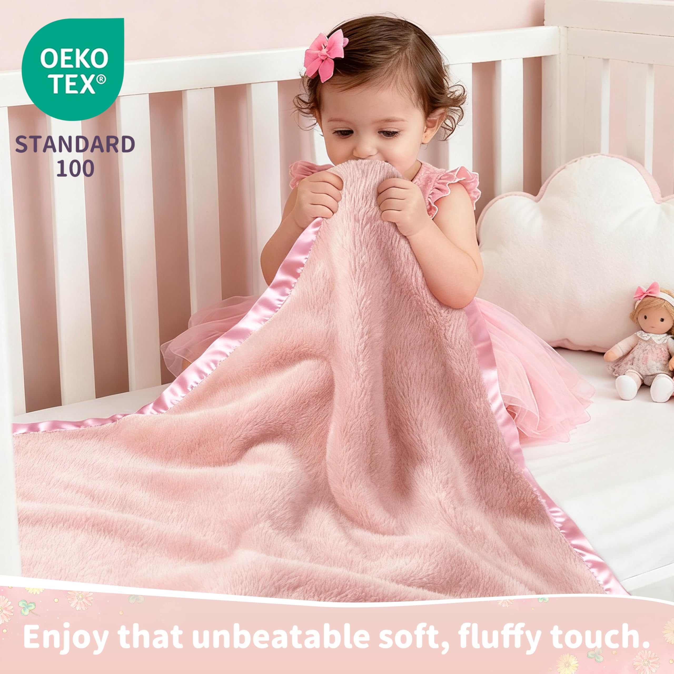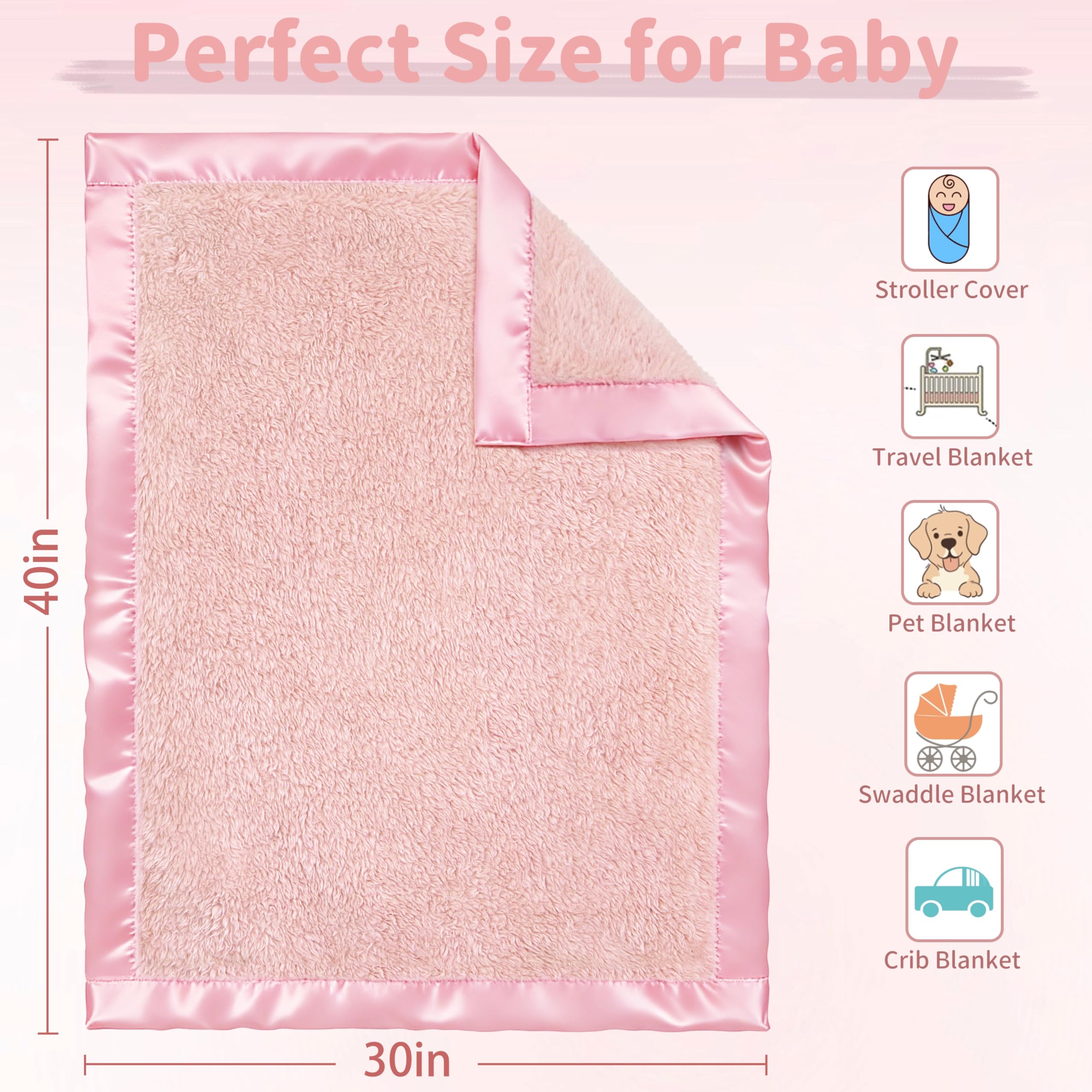 【Adorable & Thoughtful Design – With Luxe Satin Trim】: Finished with a silky 2-inch satin border, this blanket brings both elegance and comfort. The satin trim adds a stylish accent to cribs, strollers, or nursery décor—your baby will look even cuter wrapped in love