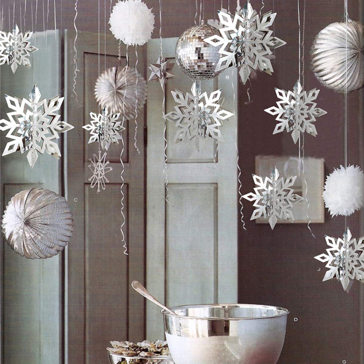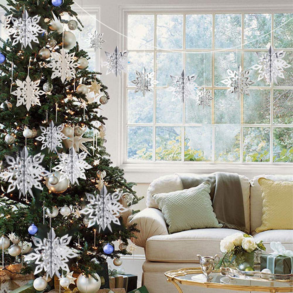 Premium Meterial: The silver glittery snowflake made by high-grade pearl paper, waterproof,very hard and uneasy to crease. Each strand is packaged separately and come assembled. Just put them up as you go, don't unwrap it in a rush to avoid tangle