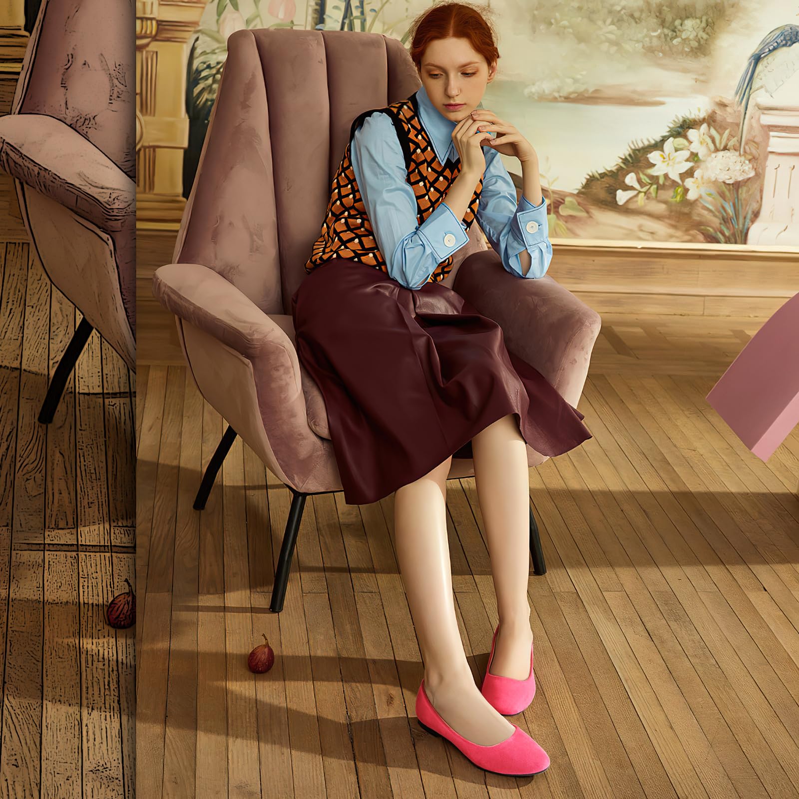 2.Elegant Suede Upper: The upper of ballet flats for women is made of suede fabric which looks elegant and fashionable. These upper material of womens flats is breathable which can be worn in summer.