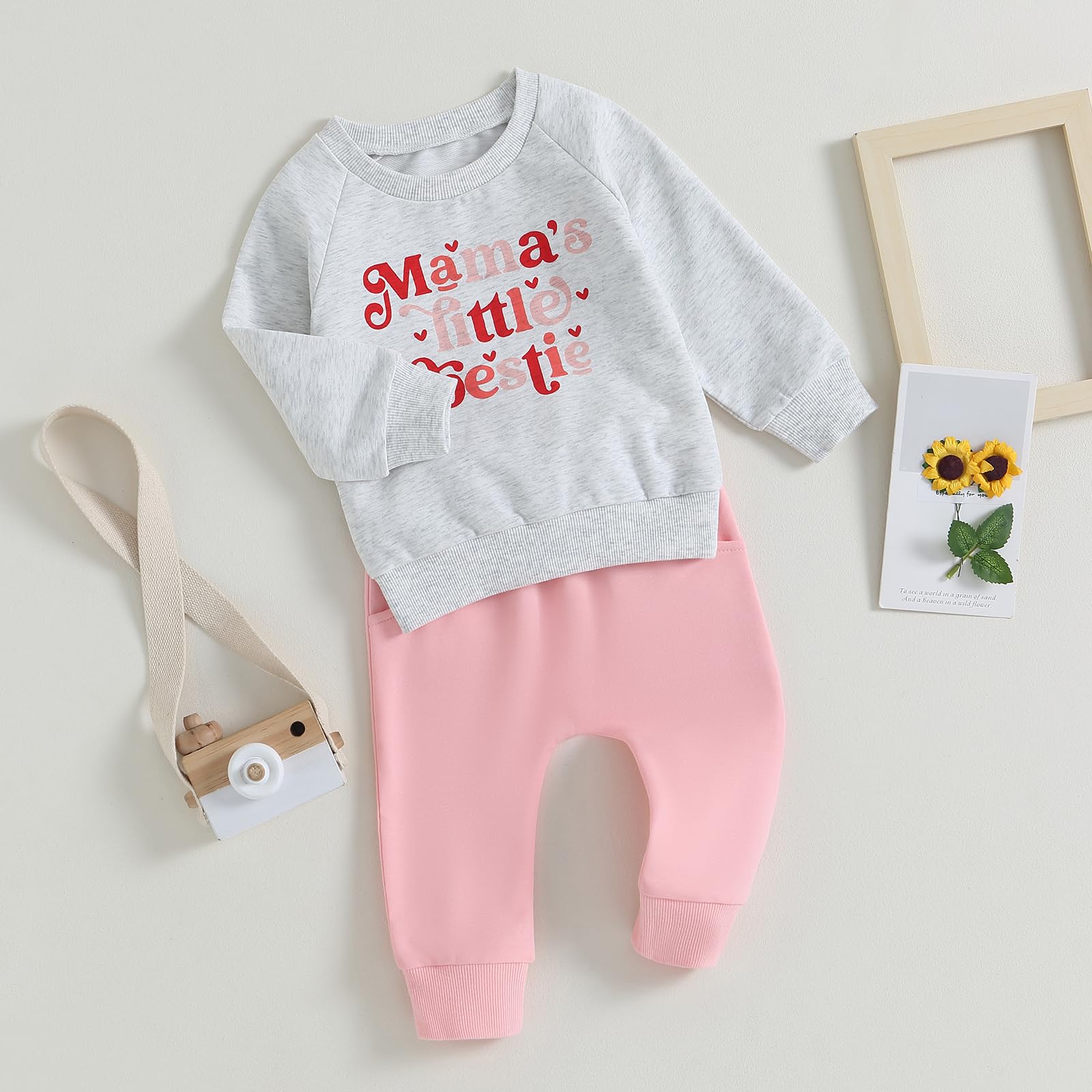 Feature: Toddler baby girl fall clothes, letter print, long sleeve sweatshirt tops, elastic waist pants, this will make your little baby more adorable and attractive.