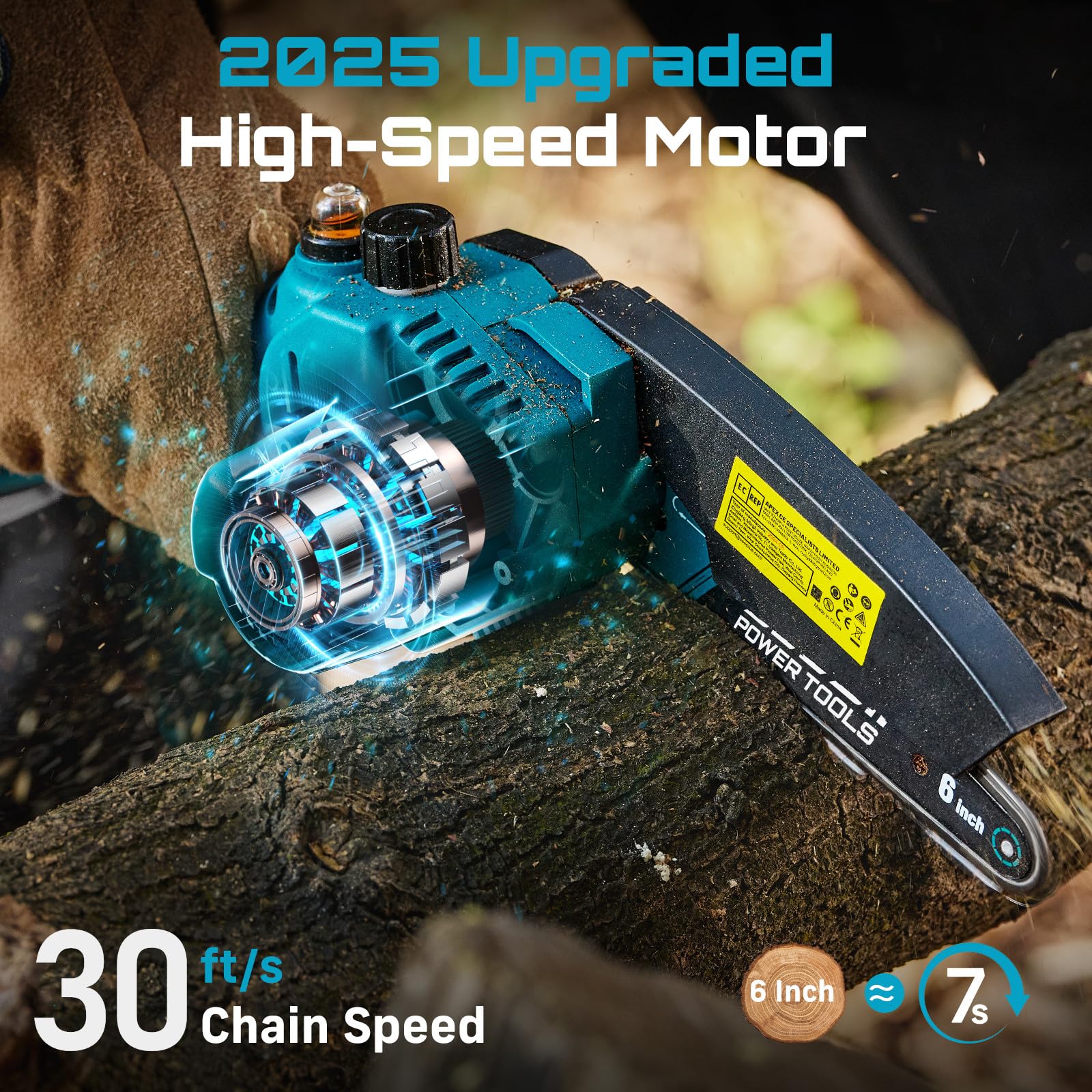 ONE-HANDED OPERATION, WOMEN FRIENDLY: This mini chainsaw cordless weighs only 2.9 pounds, just 24% of the weight of a bulky, large gasoline chainsaw, making it especially suitable for women, the elderly, and arthritis sufferers, preventing fatigue even during long working hours. It's also ideal for DIY beginners, as it's fully assembled; simply insert a fully charged battery to start cutting. The ergonomic design ensures optimal grip, providing both efficiency and a comfortable user experience.