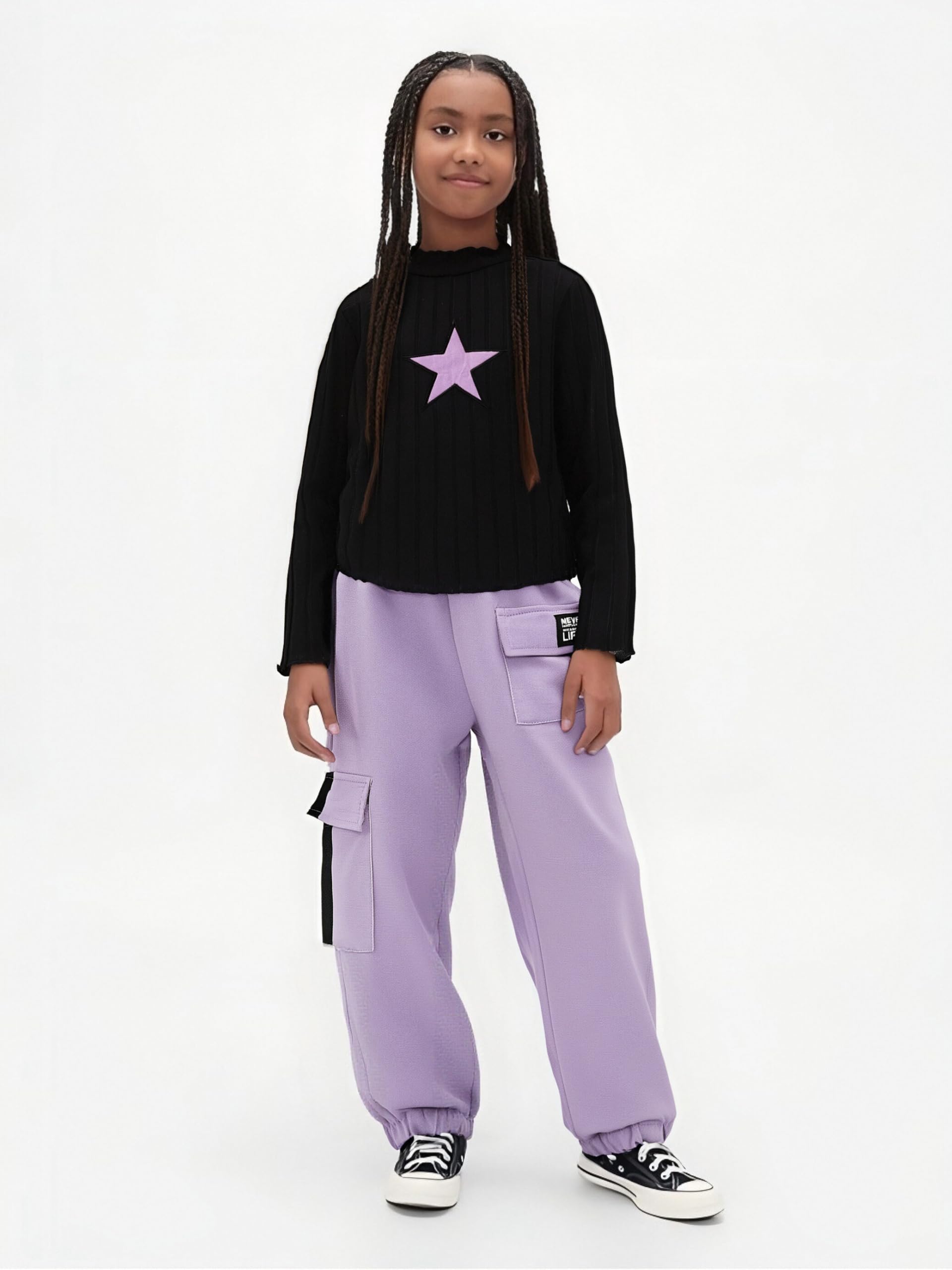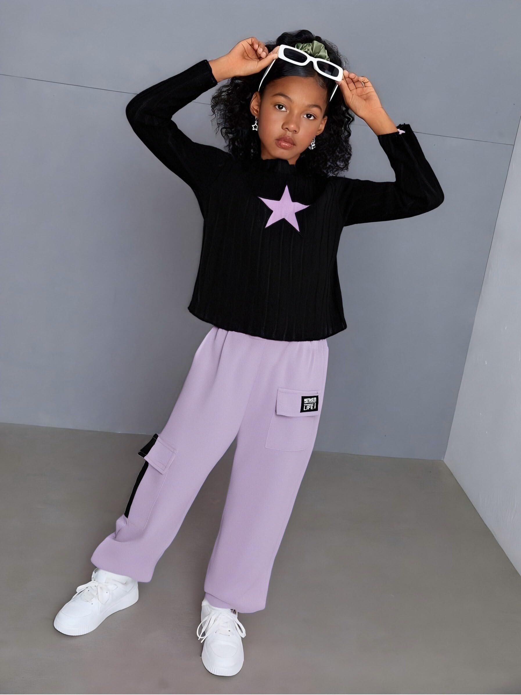 🎨 Stylish Design Details - Features a ruched long sleeve sweater top with a classic crew neck and trendy cargo jogger pants. The fashionable combo blends casual comfort with modern tween girls' fashion.