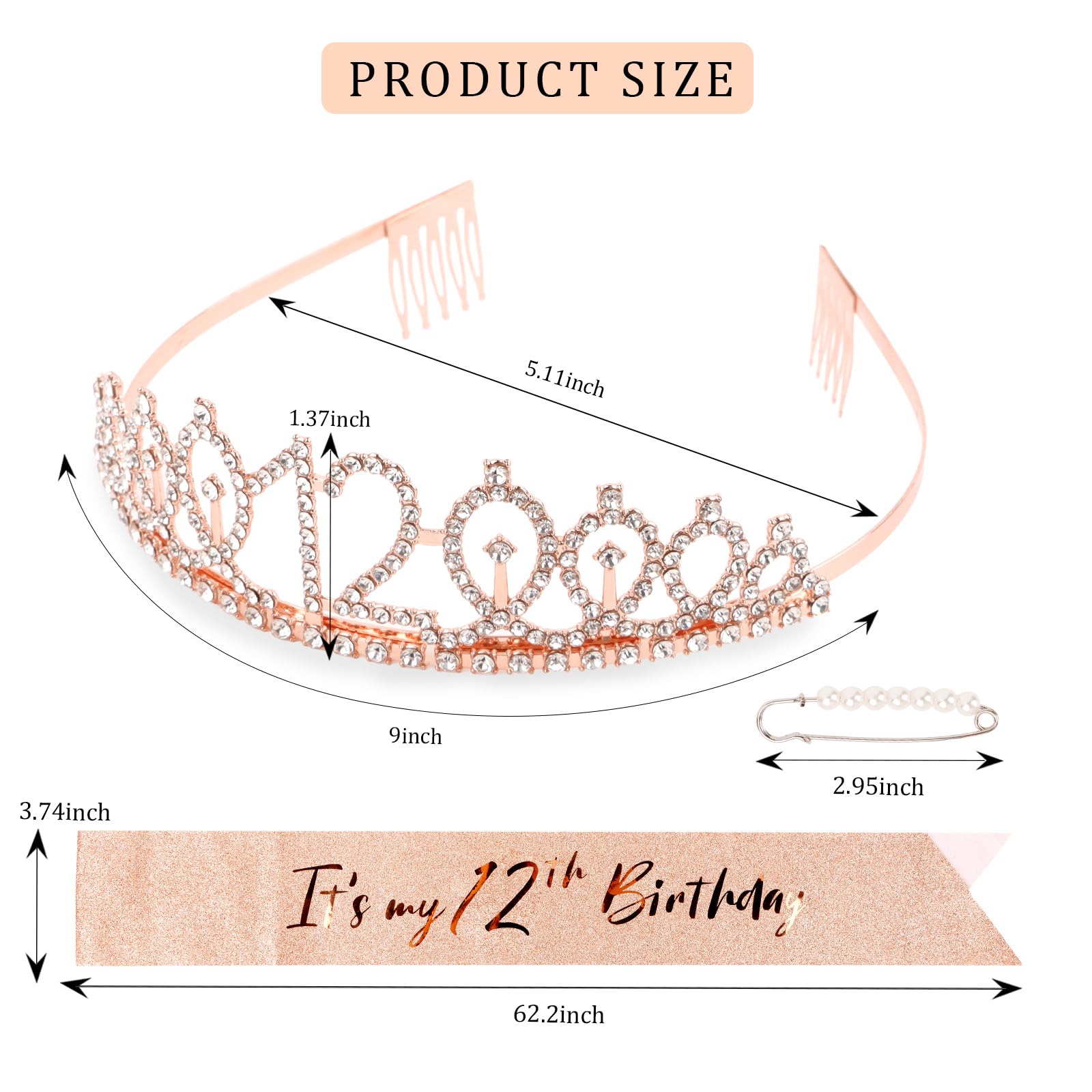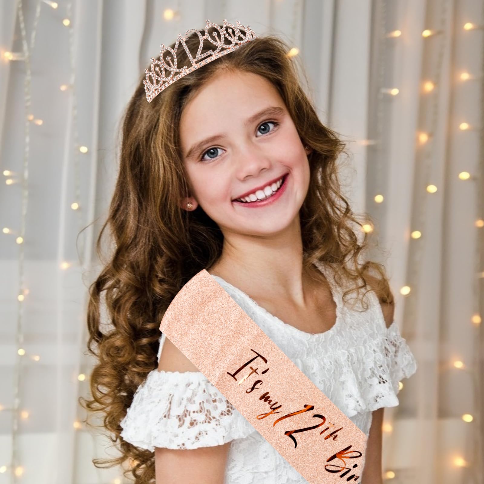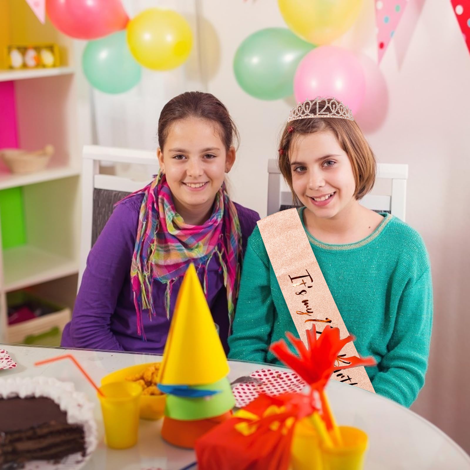 The Perfect 12th Birthday Decorations for Girls: "It's my 12th birthday" sash + rhinestone 12 tiara.
