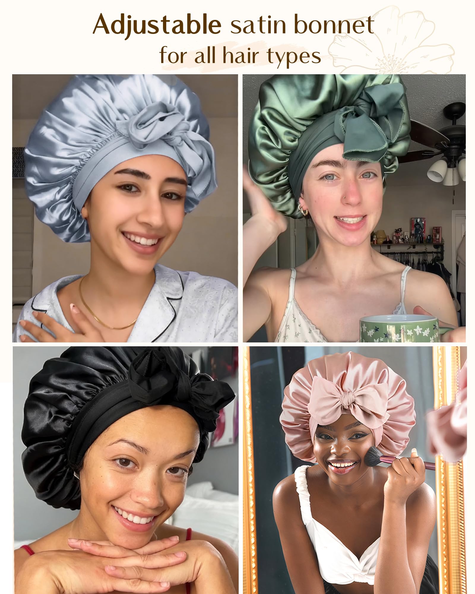 One size fits all: The silk feeling bonnet is versatile hair accessories suitable for various hair types, which making it a perfect night cap for natural, braided, curly, textured or styled hair. Double layer for added protection of hair styles and curls