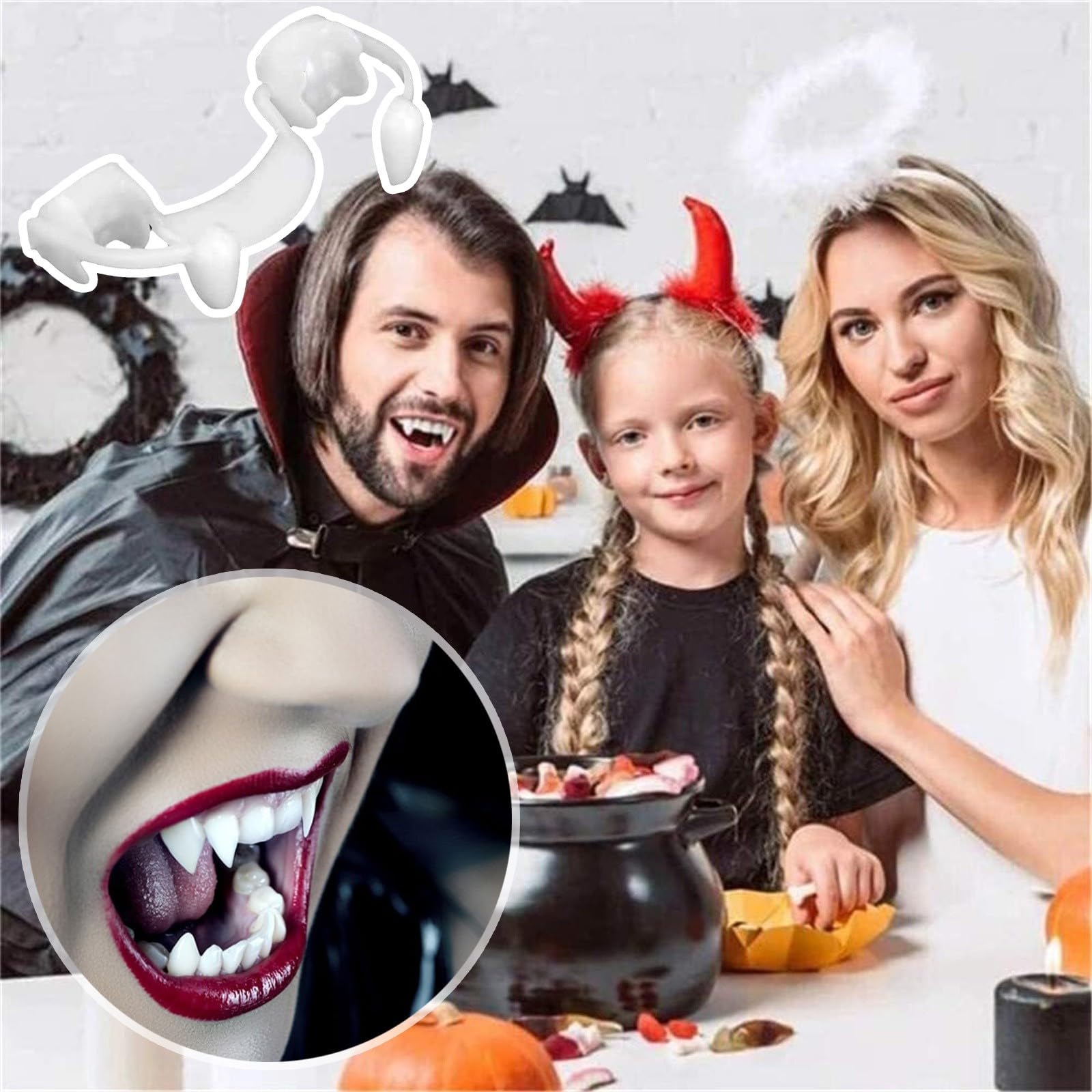 Unleash Your Inner Monster with Retractable Vampire Fangs! Transform into a terrifying vampire or zombie with these realistic retractable fangs! Designed for comfort and versatility, these fangs feature a tongue-controlled mechanism that lets you extend or retract them on command—perfect for startling friends or enhancing your Halloween costume. Why Choose These Fake Fangs? ✔ Safe & Comfortable: Made from safe plastic and soft silicone, these fangs won’t scratch gums or lips, even during hours of wear. ✔ Easy to Use: The snap-on brace design fits securely over natural teeth in seconds—no messy adhesives required. ✔ Reusable & Durable: Rinse with soap and water after use, store in the included box, and reuse for future parties or cosplay events. ✔ Ultra-Realistic Effect: The retractable action mimics real vampire fangs, making your costume or prank even more convincing. Perfect for: Halloween parties, haunted houses, and horror conventions Vampire, zombie, or werewolf cosplay Prank gifts, gag toys, and costume contests Themed photoshoots or movie prop use Note: Rinse thoroughly before first use. Not recommended for children under 12 due to small parts.