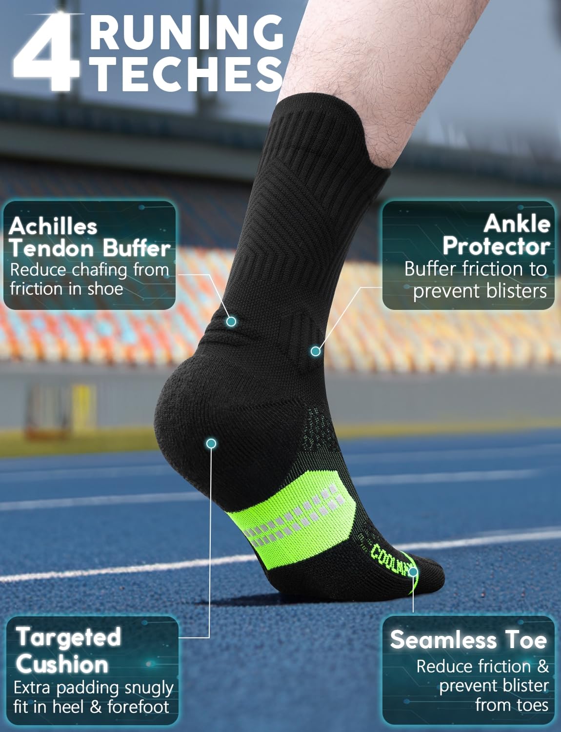 【Innovative Anti-Blister Design】: Engineered with reinforced padding at the heel and forefoot to protect against shoe friction. Includes seamless toe closure, targeted cushioning, ankle protector, and Achilles tendon buffer to prevent blisters and ensure a smooth, irritation-free run.