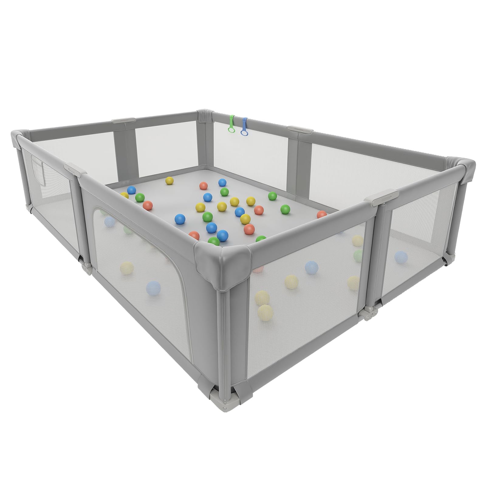 Seeday Baby Playpen, 73" x 61" Large Foldable Playpen with Mat for Babies and Toddlers, Play Pen with Soft Breathable Mesh, Ocean Balls and Pull Links, Baby Playard for Indoor & Outdoor, Gray