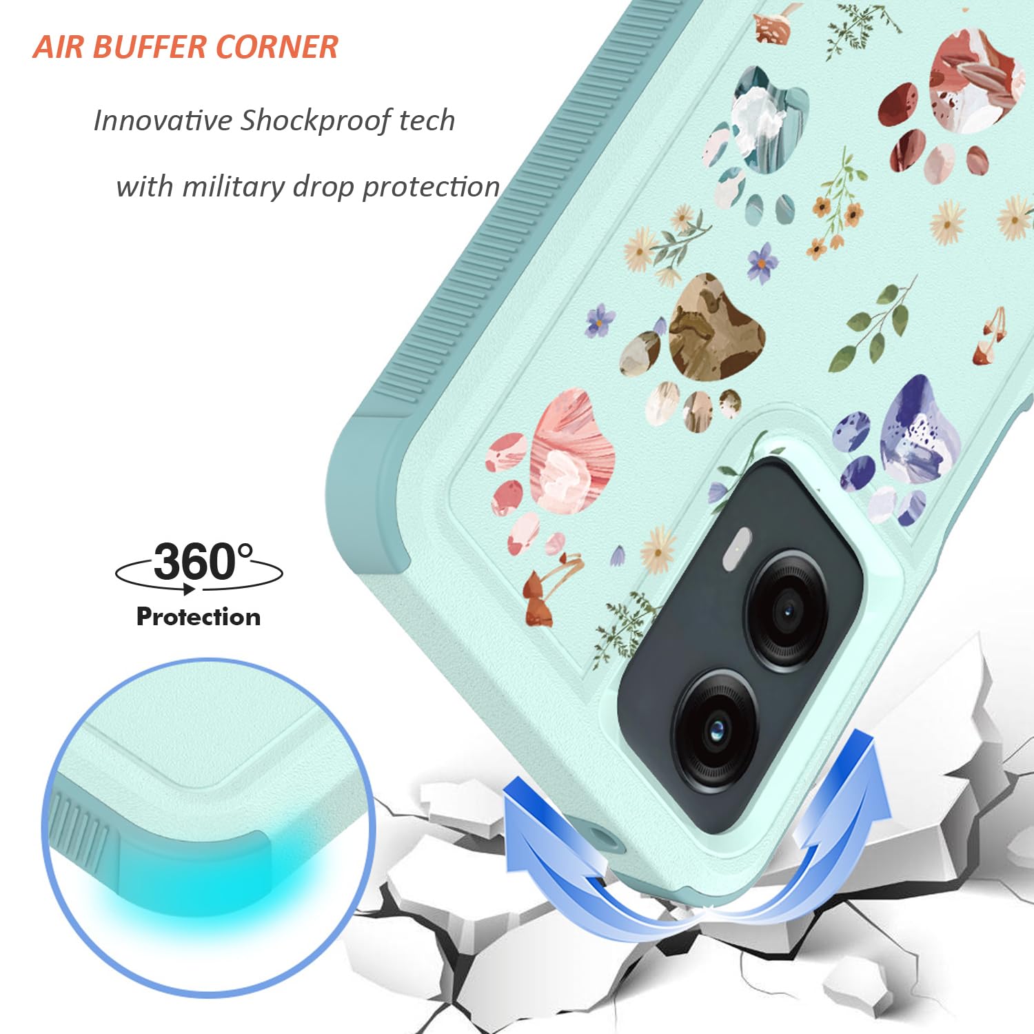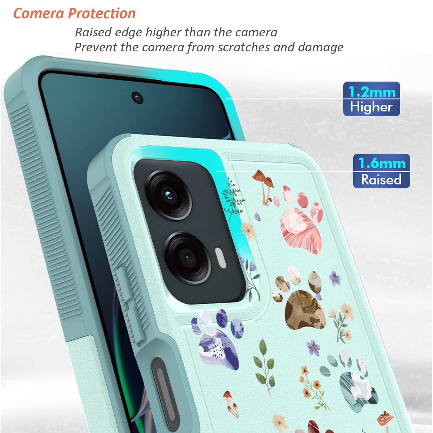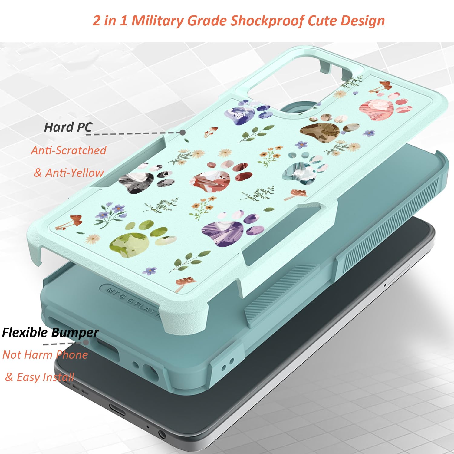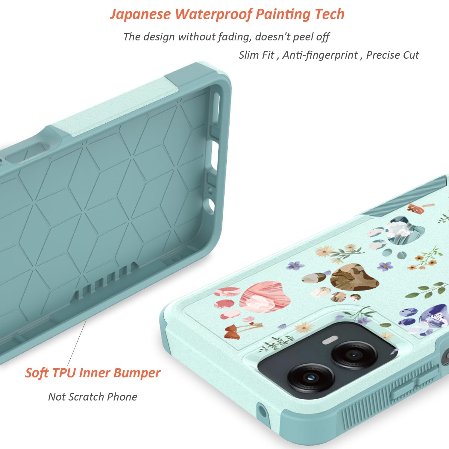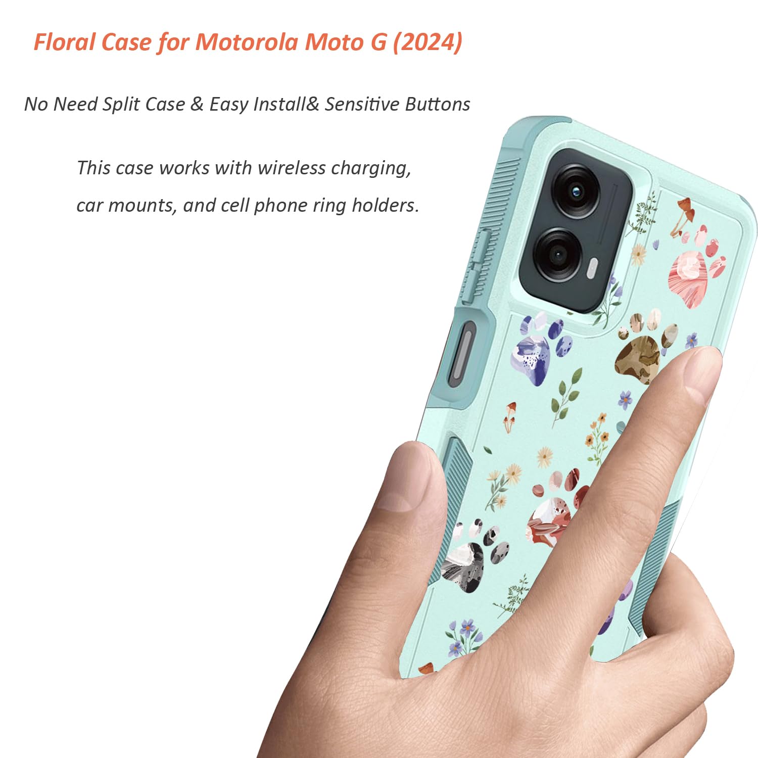 [Pretty Aesthetic Designs]: Compatible with Moto G(2024) 5G, dual layer hybrid Protective blue green cases, New arrival mint green blue print white beautiful image plants animals graphic cool funny fashion pattern, while your cellphone 360 full body armor protection.