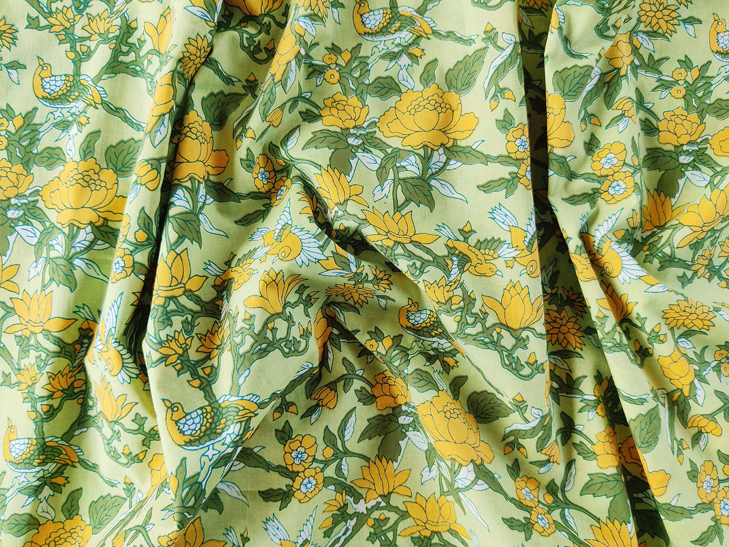 This is a precut piece of 5 yards of an Indian cotton fabric. This is a hand printed fabric using wooden blocks or screens. The width of the fabric is 42 inches. It is a pure cotton yardage and is a thin light weight cotton. Ideal for garments and light home linen. Use this unique and beautiful printed cotton for your next sewing project. If you order 2 quantity, you will receive 2 pieces of cut fabrics of 5 yards each. You will not receive a continuous yardage.