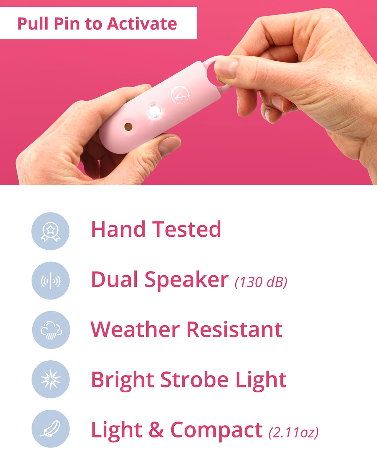 Designed to wear with ease, this personal alarm loudest comes with a keyring and a carabiner. Whether attached to a purse, backpack, or belt loop, this pocket alarms for women is both stylish and functional, ideal for personal safety for women.