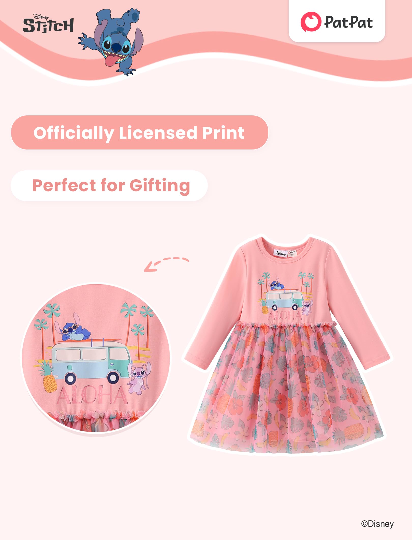 Disney Officially Licensed: Immerse your child in a fairytale world with our officially licensed Disney Stitch tank dress for girls. Stitch's playful, adventurous, and loyal spirit encourages children to embrace their unique qualities and foster strong bonds with others. These Disney toddler girl clothes are perfect for little Disney fans