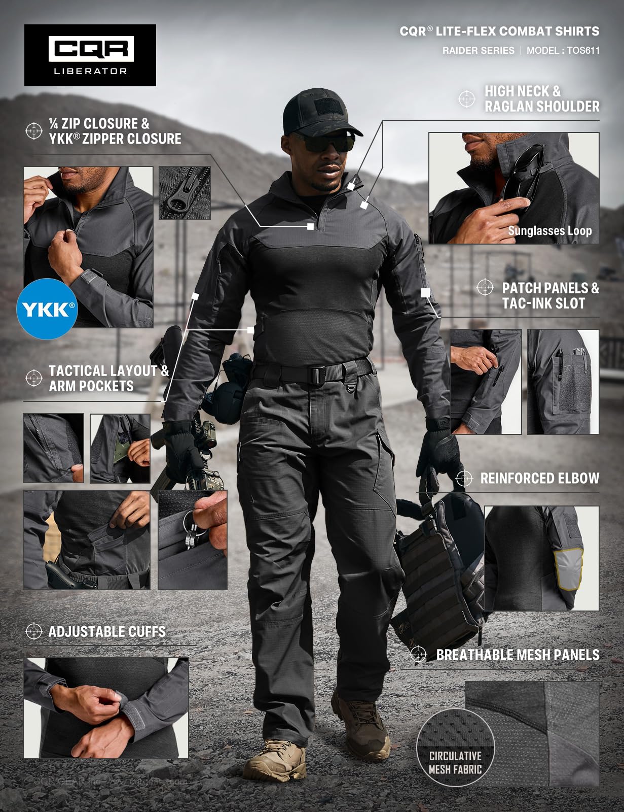 CQR Men's 1/4 Zip Combat Shirt Series inspired by traditional duty uniform for modern-day tactical use.