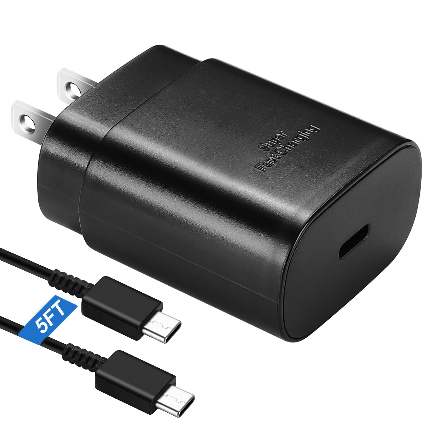【Safety Super Fast Charger Type C】25W PD 3.0 Technology provides Max 25W output power for all Samsung Galaxy S24/S24 Ultra/S24 Plus/ S23/S23 Ultra/S23 Plus/S22/S22 Ultra/S22+/S21/S21+/S21 Ultra/S20/S20+/S20 Ultra/Note 20 Ultra,Fast charge your battery from zero up to 100% in about 60 min,5 times as fast as Standard Charger Block,10 times as fast as PC USB port and saves you time