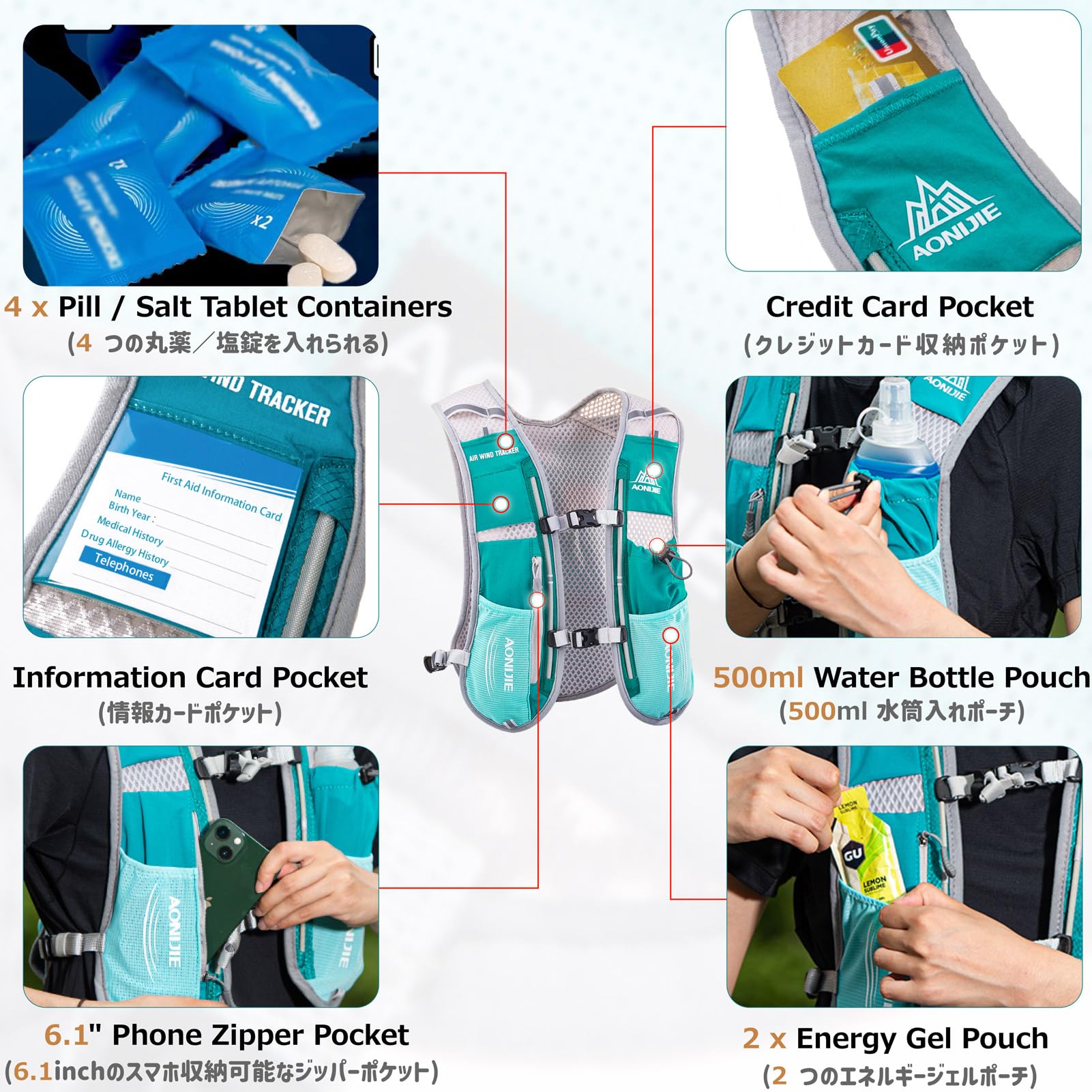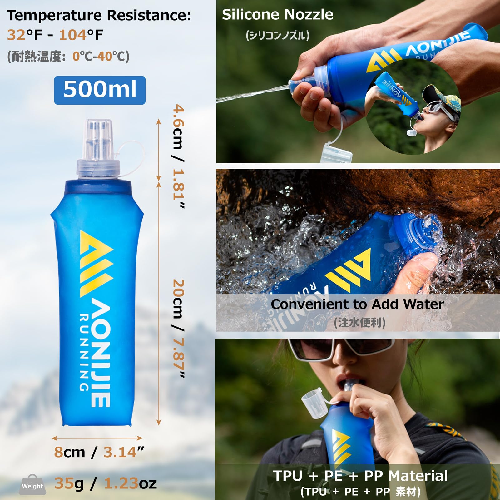 Hydration bottle: Equipped with 500ml soft water bottles, the high quality hydration bottles are made of tpu material and they are bpa-free. The hydration bottles have complete pressure-tolerant and leak-proof function, ensuring sufficient water in various outdoor activities