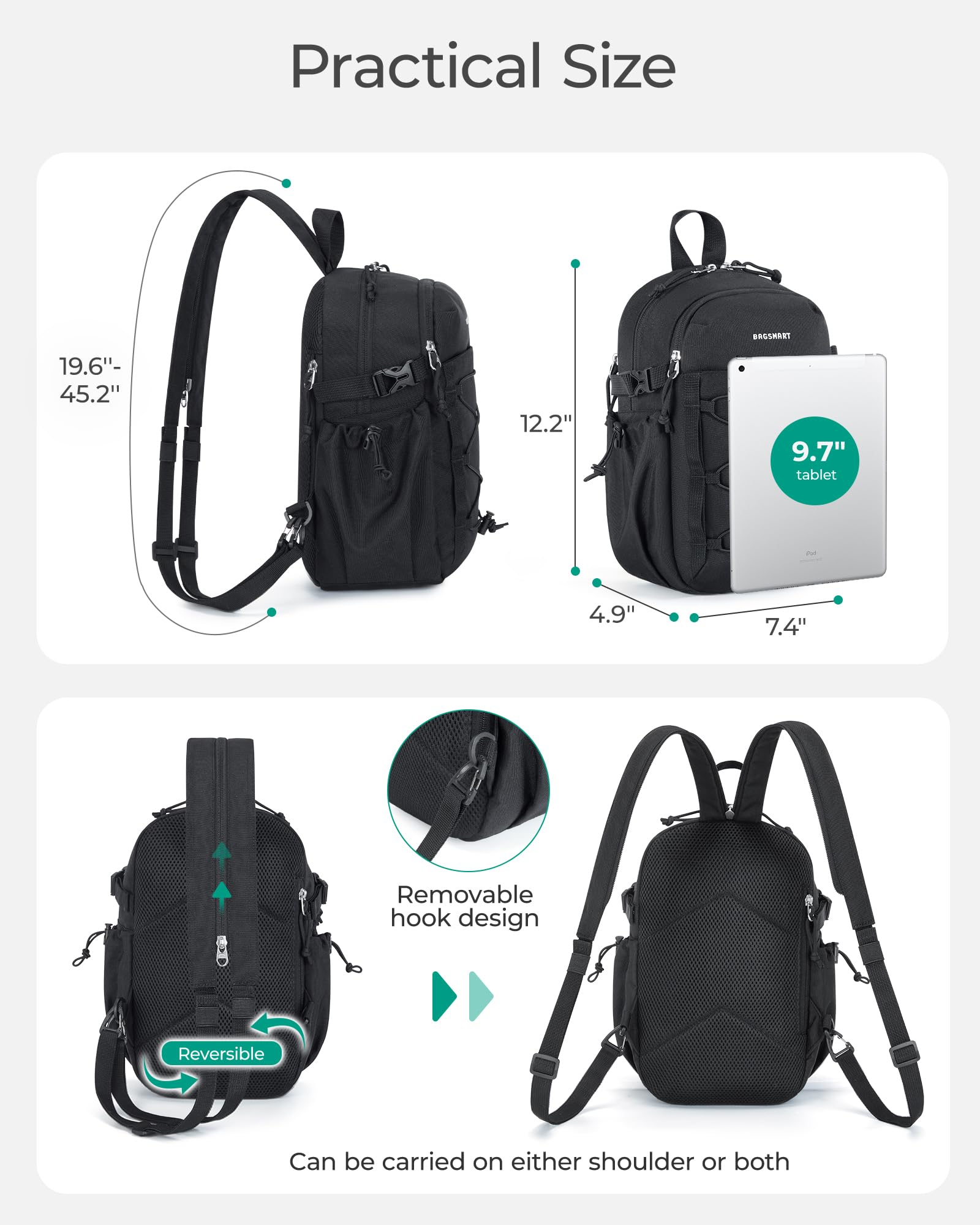 Comfortable and Lightweight Design: This sling bag for men is crafted for all-day comfort. It features padded shoulder straps that are adjustable from 19.6 inches to 45.2 inches, accommodating both left and right shoulder carrying preferences. The lightweight and cushioned design ensure a comfortable fit, making it perfect for long days on the go