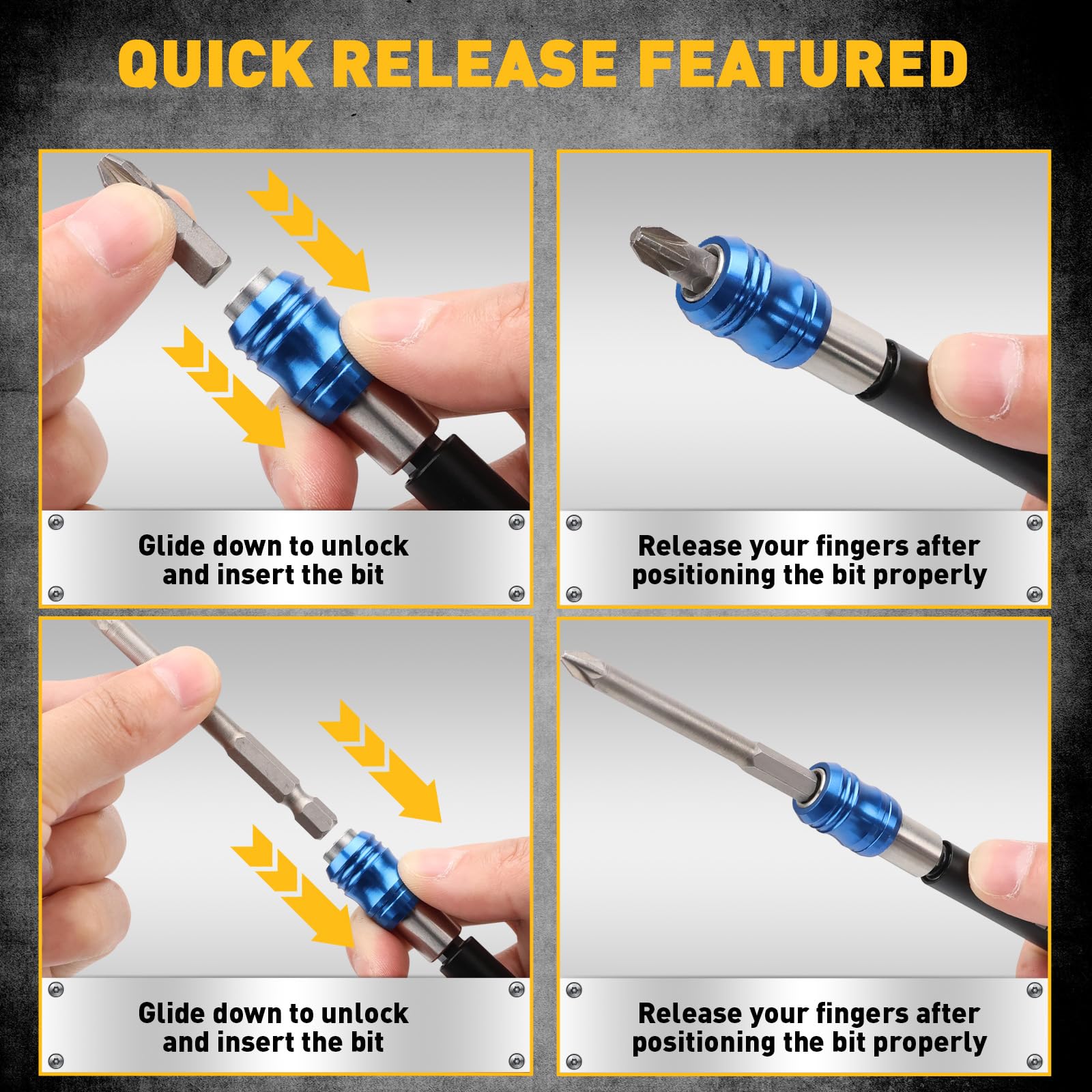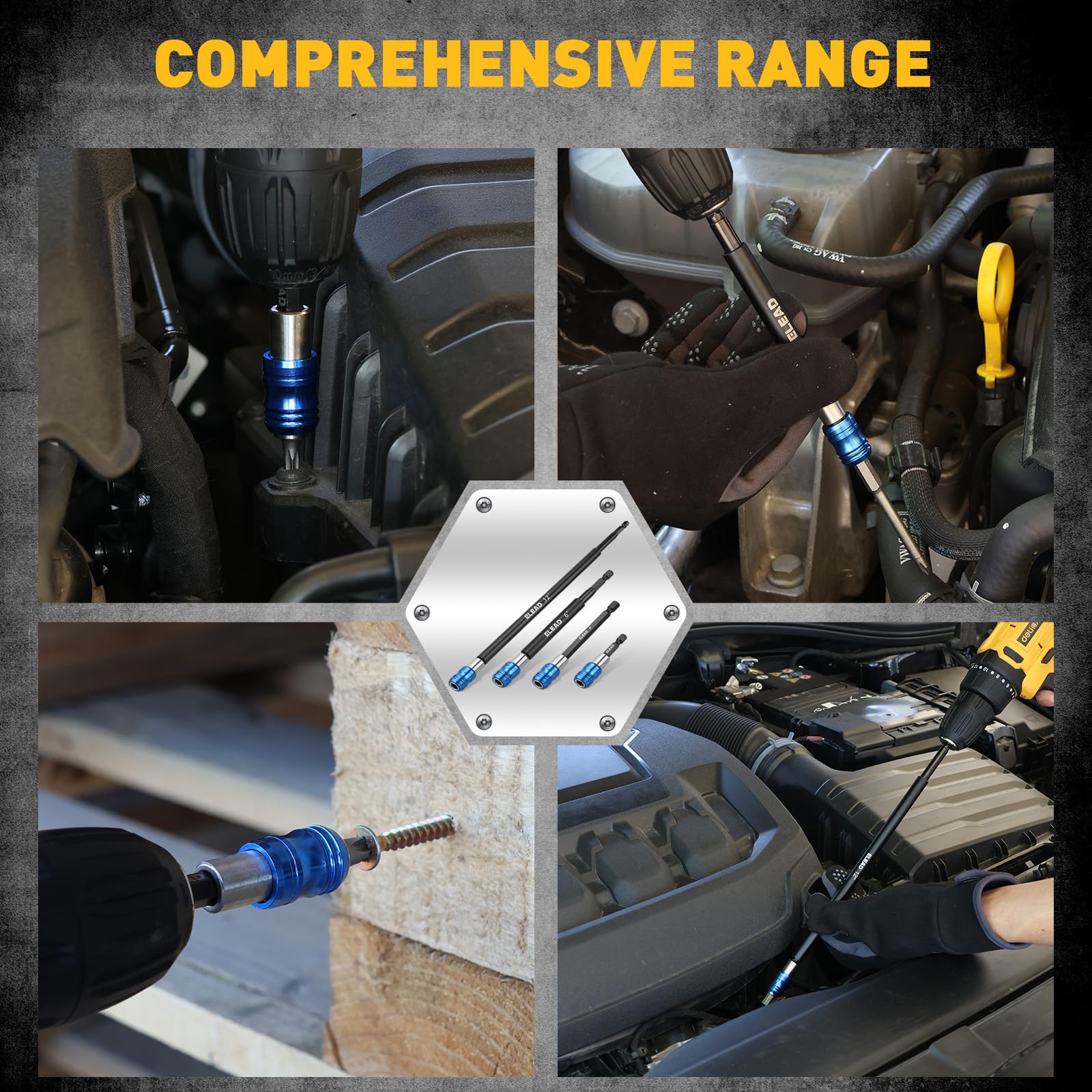 VERSATILE COMPATIBILITY - Designed with a universal 1/4-inch hex shank, this extension set works seamlessly with all 1/4-inch hex bits, offering unmatched flexibility for various screwdrivers, drills, and other tools.