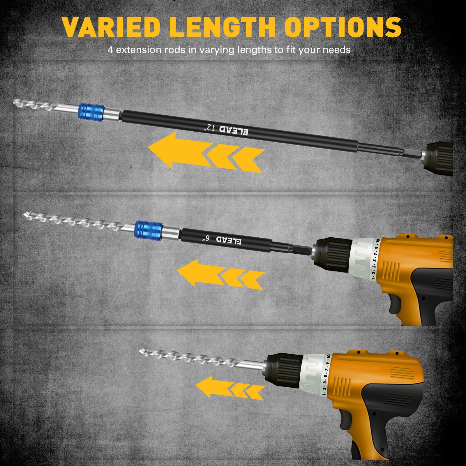 DURABLE MATERIAL - Built with premium heat-treated chrome vanadium steel, this drill bit extension set ensures long-lasting strength and durability, making it a reliable tool for both home and professional use.