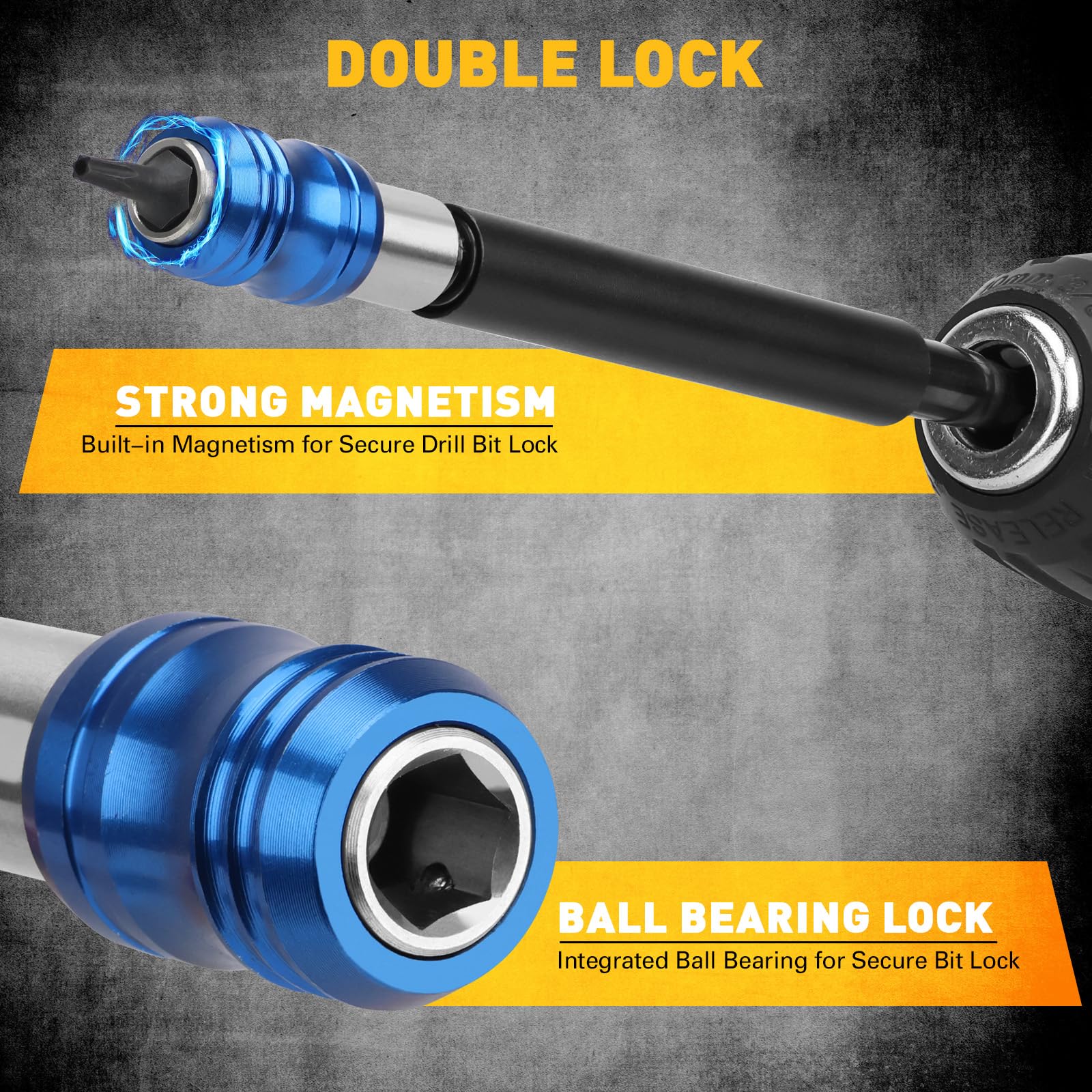 MAGNETIC STABILITY - The powerful built-in magnet and ball-bearing lock system securely hold your bits in place, providing quick, easy bit changes and ensuring a precise, stable performance on every job.