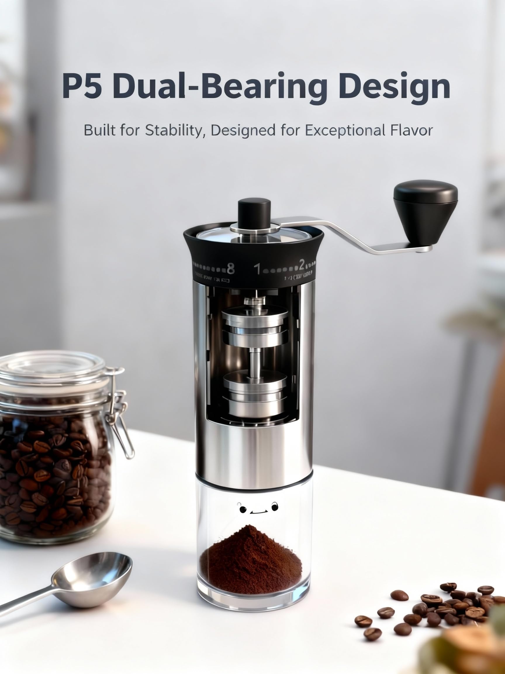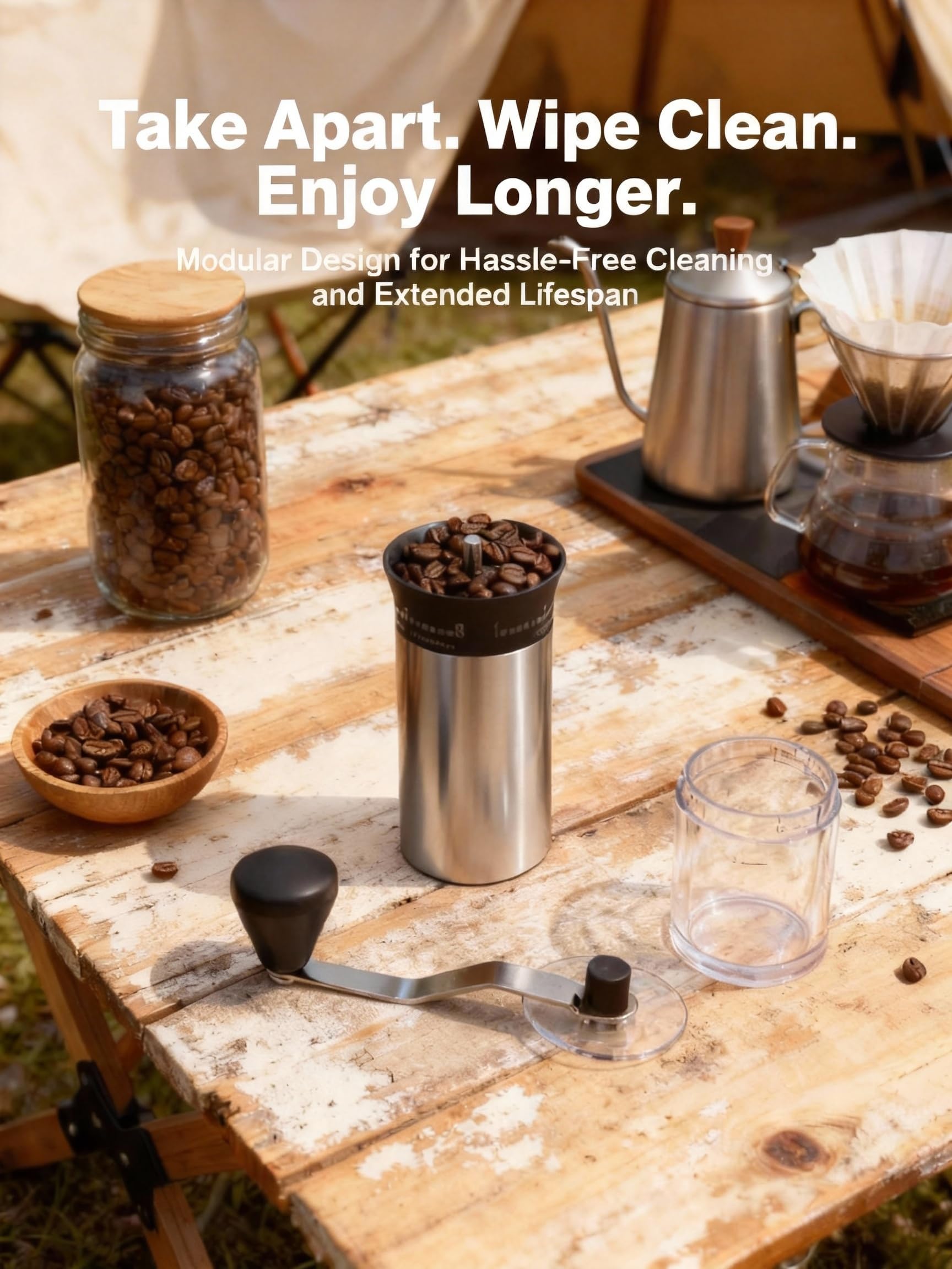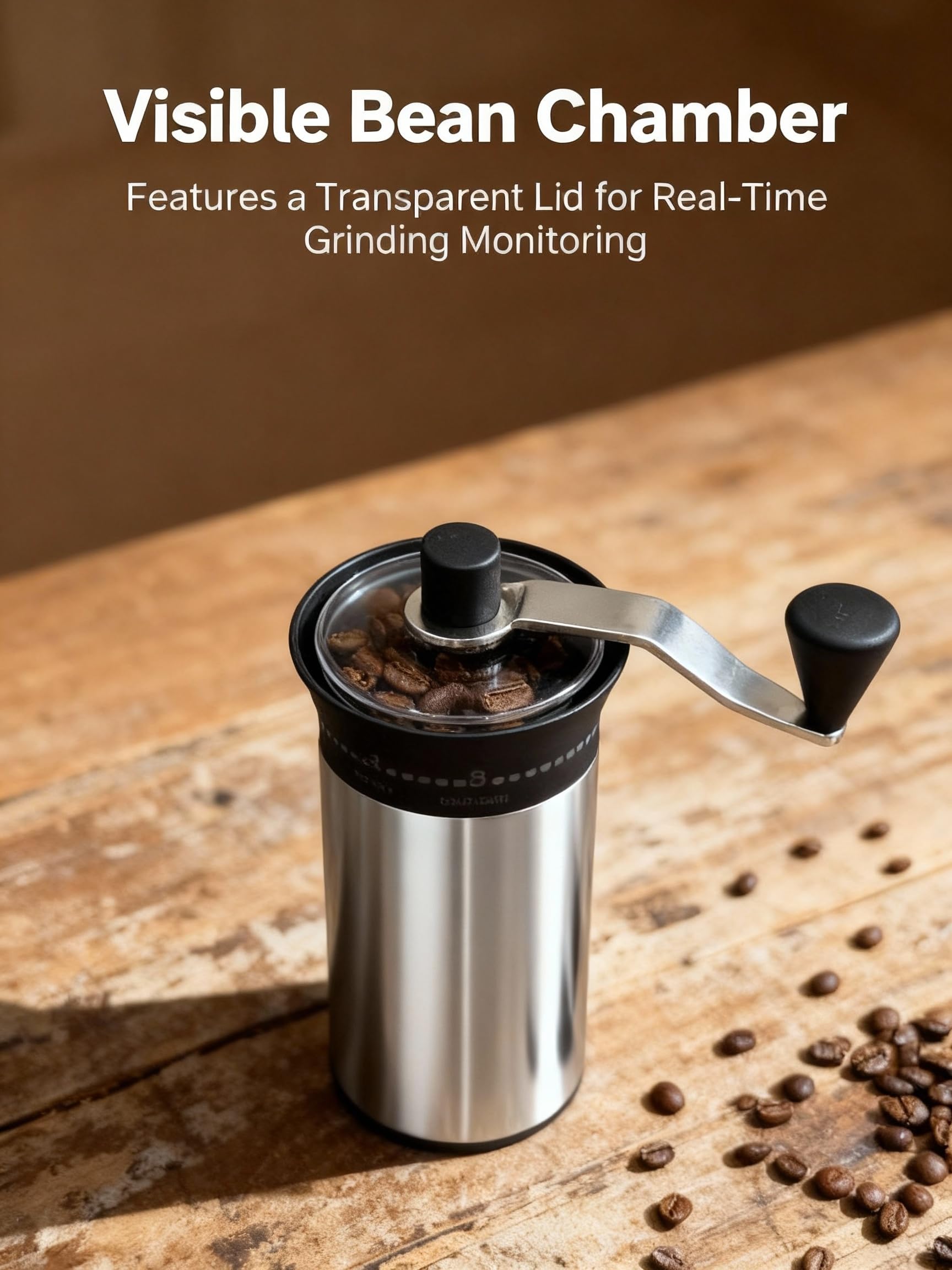 Premium Stainless Steel Body & Ergonomic Handle:Built with a durable, stylish stainless steel body and matching crank for long-term reliability. The ergonomic handle ensures a comfortable, non-slip grip, reducing hand fatigue during grinding