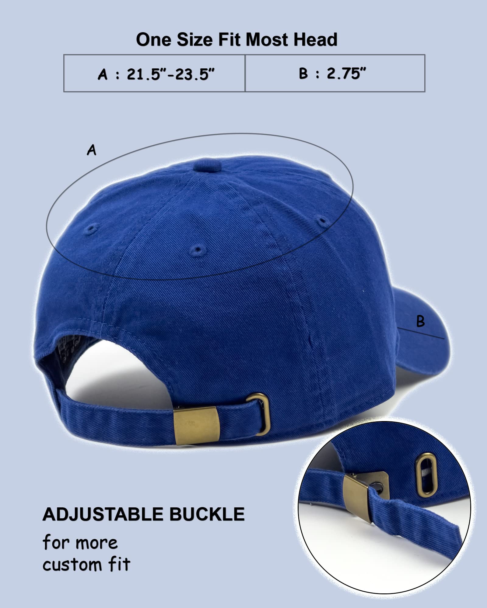 Adjustable Metal Buckle Back Closure : Great Fit for All Head Size. Hat Size Measurements : 21.5" - 23.5"