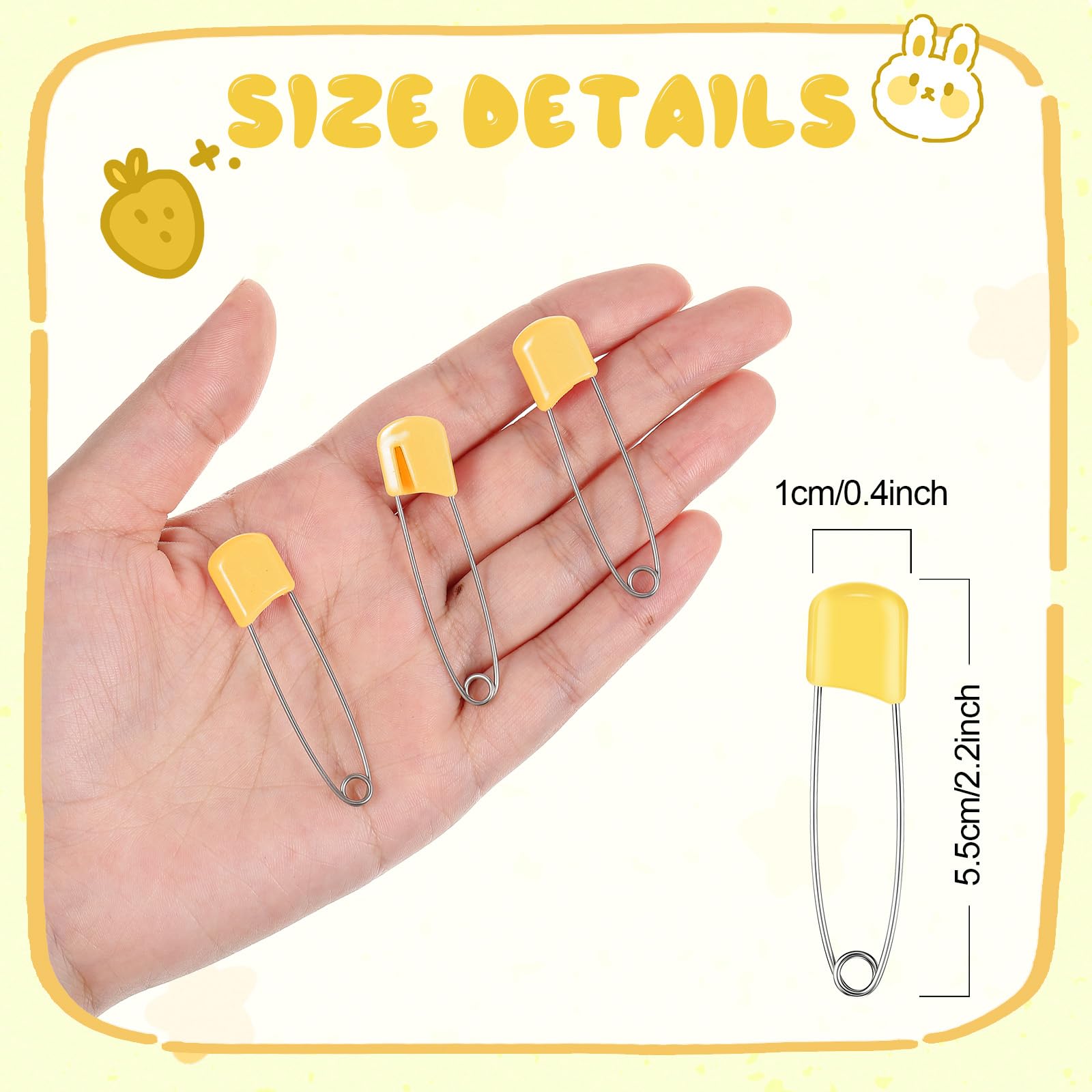 Package Includes: you will get 50 pieces yellow safety pins, which are enough for your daily needs, also coming with a velvet bag that can storage all the diaper pins
