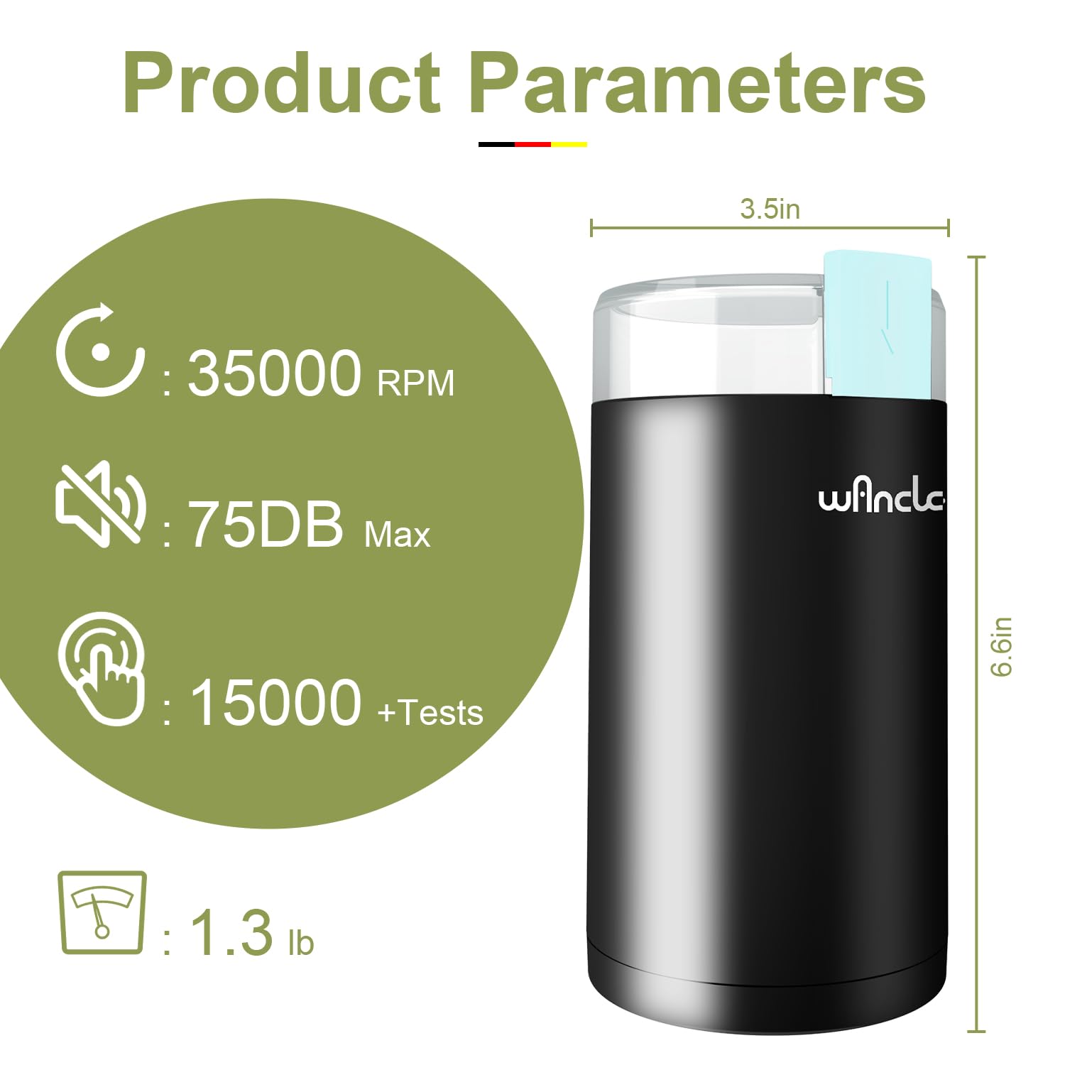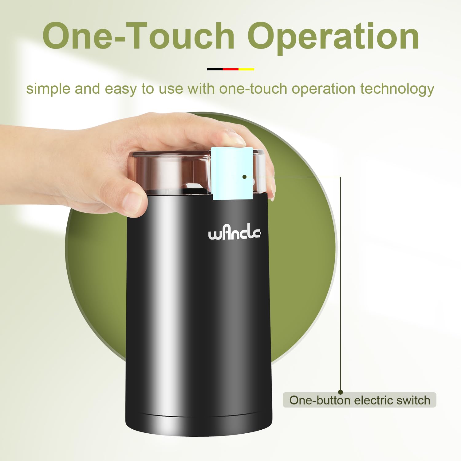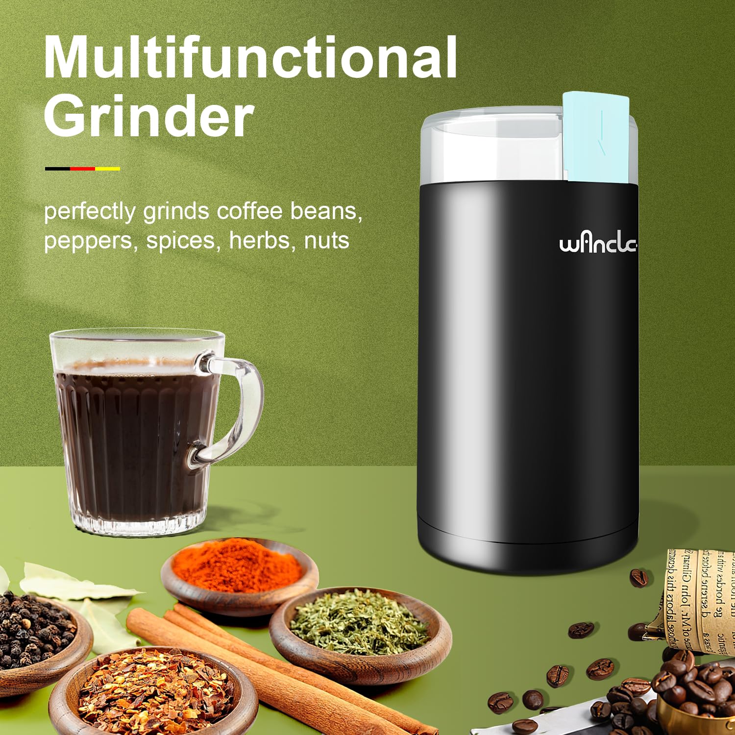 ✅【Save Your Precious Counter Space】Wancle coffee grinder offering a wide range of abilities. Excellent stainless steel blade chops ingredients through rapid spinning, so it not only works well with coffee beans but also works spice, seed, nut, herb.