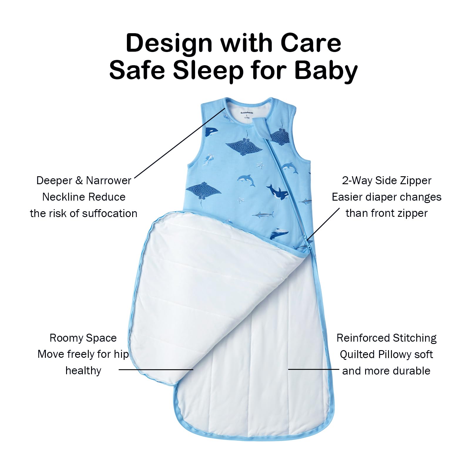 SAFE FOR BABY - We prioritize your baby's safety. The sleep sack features a deeper and narrower neckline to prevent any loose fabric that could pose a suffocation hazard. A zipper protector shields your baby's face from scratching. Our breathable fabric reduces the risk of overheating, making it suitable for year-round use.