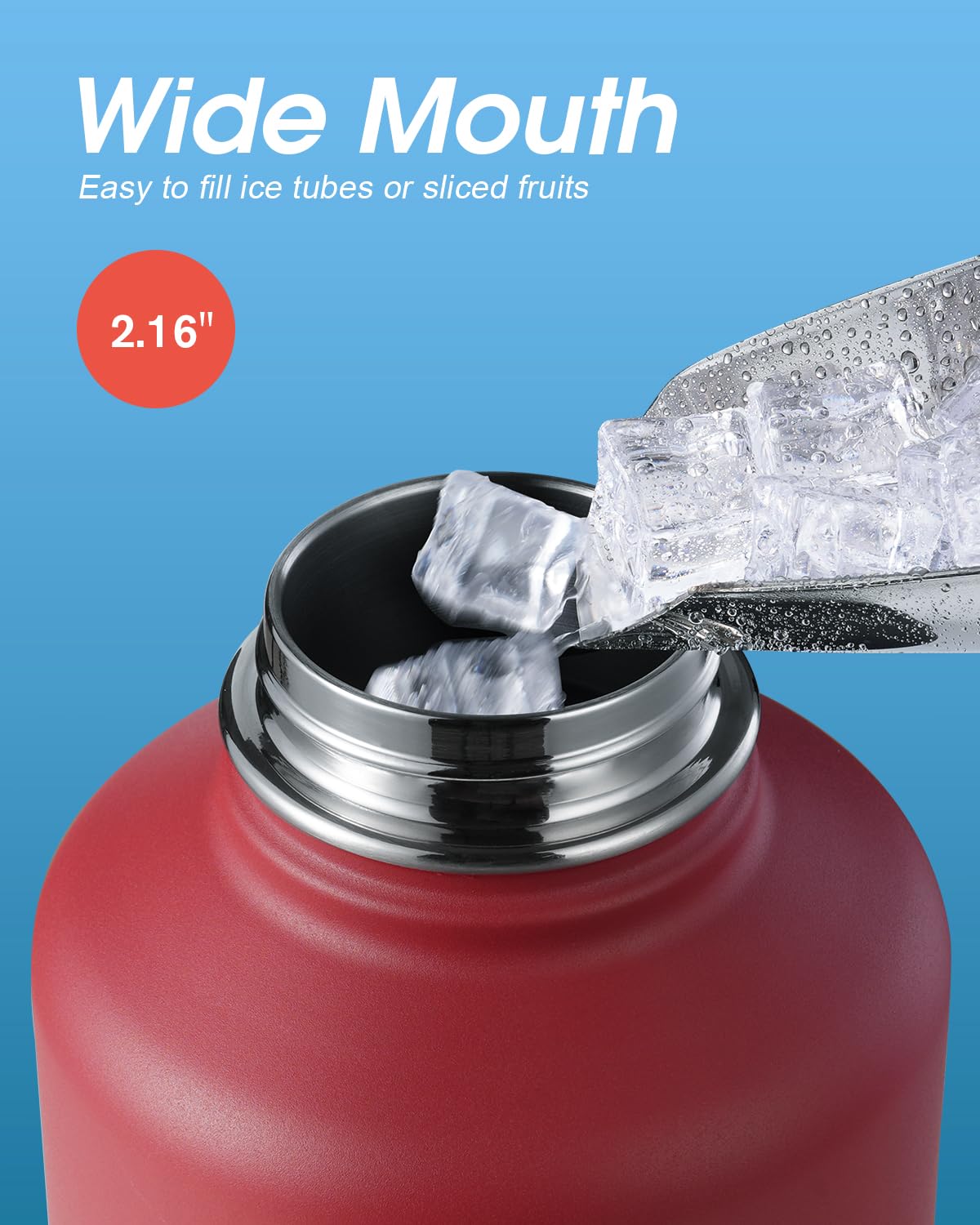 Easy to Maintain: This stainless steel water flask is rustproof, sweat-proof, and BPA-free. Hand wash only and no abrasives. Do not put it in a freezer or microwave. Not for soft drinks. Be carefully of being scalded when handling hot liquids