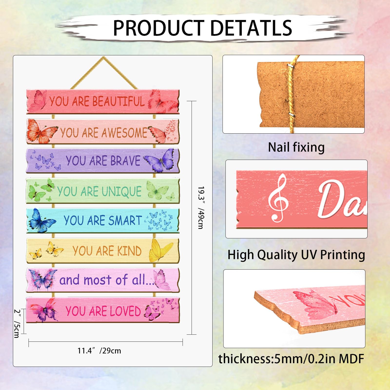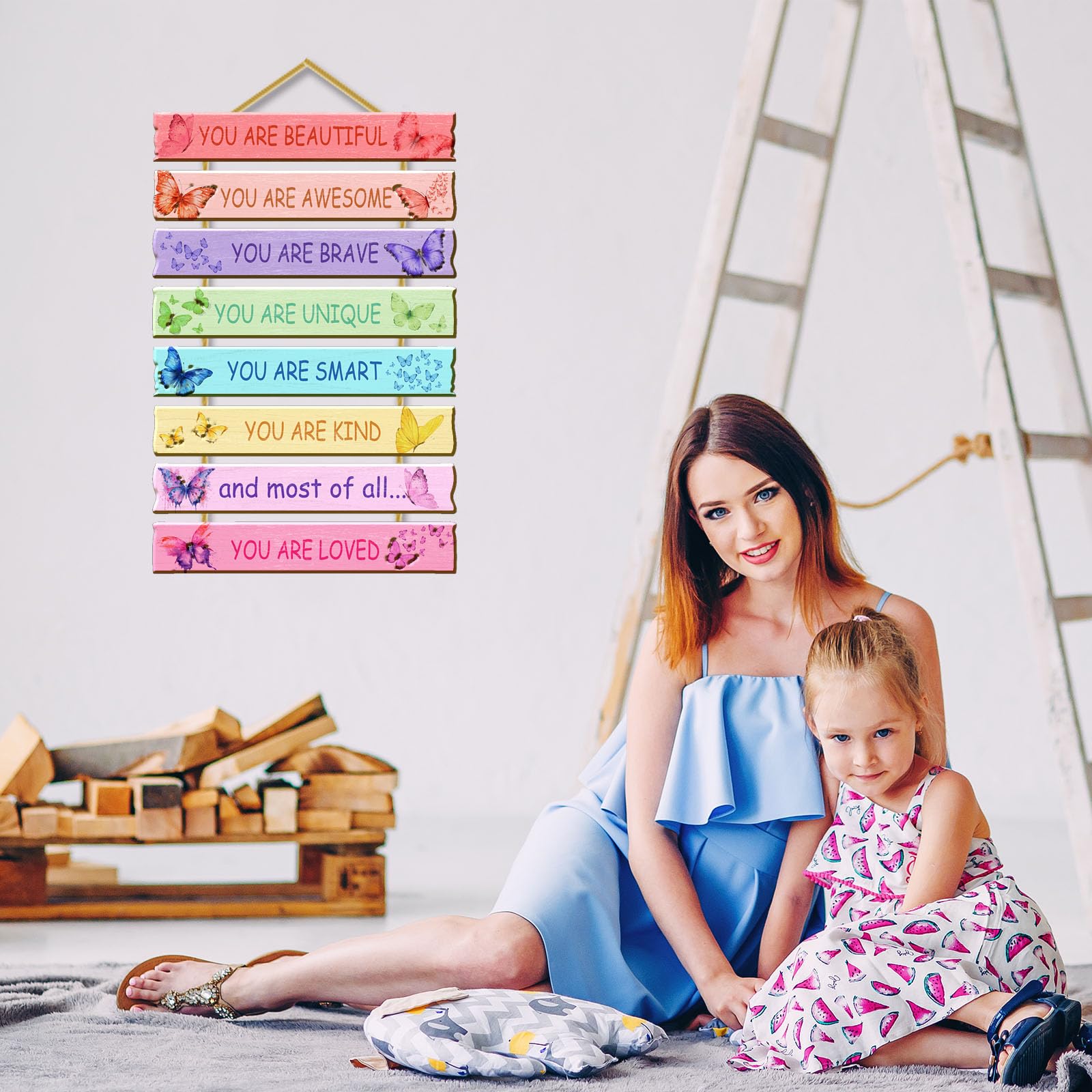 Girls Room Decor -- This inspirational wall decor is composed of 8 pieces of MDF with size of 11.4"*2" and thickness of 0.2",The back is fixed with hemp rope using rivets (not glue that can easily fall off), easy to hang and no need to worry about falling off.